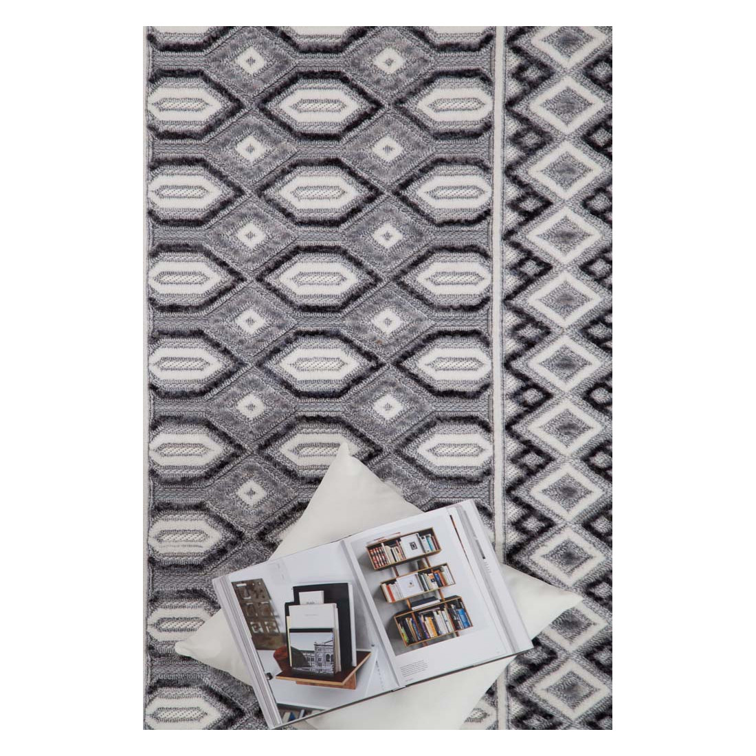 Μοντέρνα ανάγλυφα χαλιά τριών επιπέδων με ιδιαίτερη γυαλάδα στην επιφάνεια και μοναδικό κρόσσι. Σε λευκούς, ασημί και γκρι χρωματισμούς ανανεώνει το χώρο σας και αποτελεί ξεχωριστή πρόταση τόσο για το σαλόνι καθώς για την κρεβατοκάμαρά σας. Πρακτικό και εύκολο στο καθάρισμα.