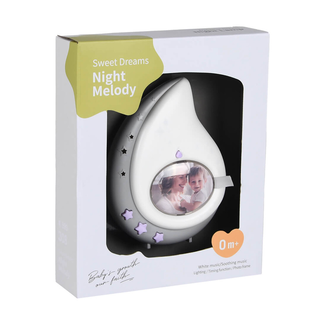 Η λάμπα νυκτός Dream Μelody με μουσική συμβάλει στη χαλάρωση του μωρού σας, ώστε να κοιμηθεί πιο εύκολα και γρήγορα. Διαθέτει μουσική, χαρούμενους ήχους και φως με σκοπό να απασχολούν το παιδάκι σας και να το διασκεδάζουν και με αυτό τον τρόπο αναπτύσσει ακουστικές και οπτικές αισθήσεις. Στο κέντρο της συσκευής υπάρχει ένα παράθυρο, ώστε να βάλετε φωτογραφία με το παιδάκι σας.