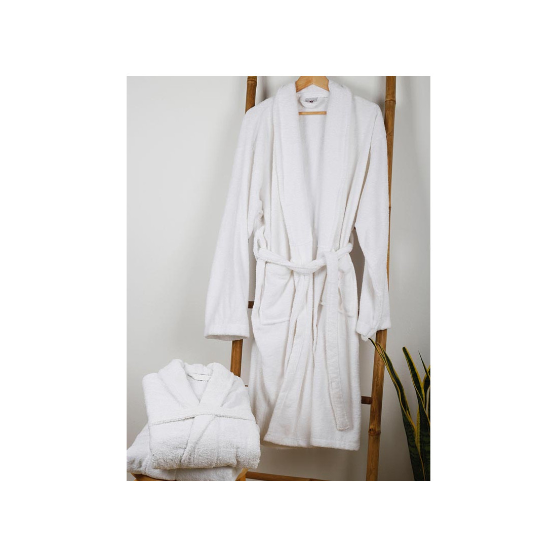 Μπουρνούζι πενιέ από 100% βαμβάκι. Διαθέτει γιακά, δυο τσέπες και ζώνη στη μέση αγκαλιάζοντας το σώμα μετά το μπάνιο. Ένα ιδιαίτερα απαλό μπουρνούζι, απορροφητικό και ανθεκτικό στα πλυσίματα, υπόσχεται προστασία, ζεστασιά και ποιότητα. Η διαχρονική λευκή απόχρωση το κάνει κατάλληλο για άντρες και γυναίκες. Ιδανική επιλογή για τον ξενοδοχειακό σας εξοπλισμό, θα ενθουσιάσει τους επισκέπτες σας.