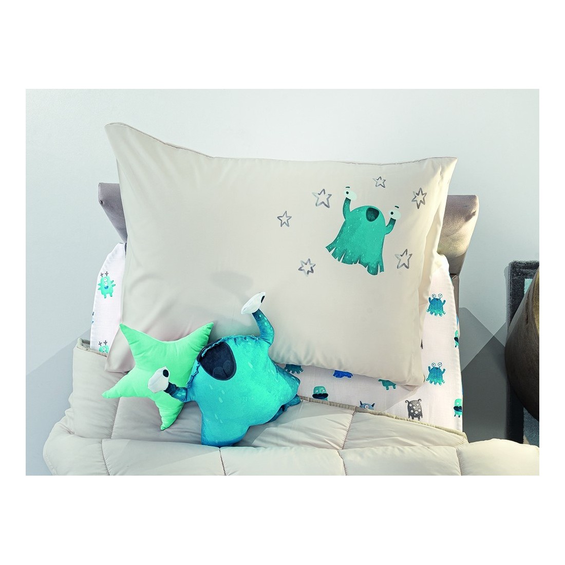 Διακοσμητική μαξιλαροθήκη suede με μαλακή υφή από την Saint Clair Paris. Ανακαλύψτε όλη την σειρά Monsters Blue και ολοκληρώστε το παιδικό σετ δωματίου.