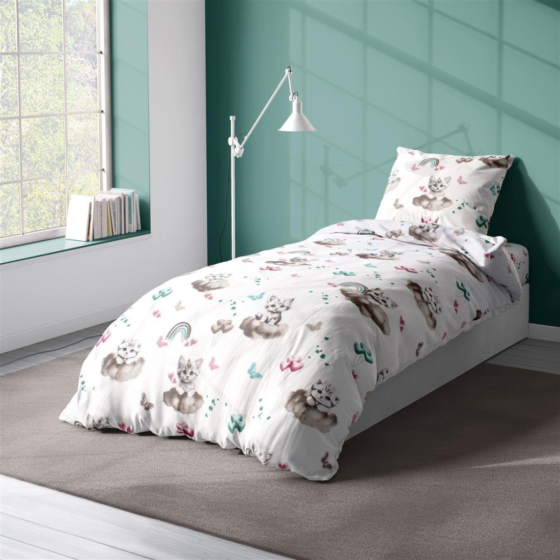 Απαλό και ζεστό πάπλωμα για μονό κρεβάτι. εμπριμέ με χαρούμενα χρώματα και μοντέρνες παιδικές παραστάσεις. διαστάσεων 160X240 cm. με γέμιση αντιαλλεργικής βάτας 300gsm. Κατασκευασμένο από απαλό 100% βαμβακερό ύφασμα 144 κλωστών. Κατασκευάζεται στην Ελλάδα. Συσκευασία Βαλιτσάκι Polybag με φερμουάρ και χερούλι.