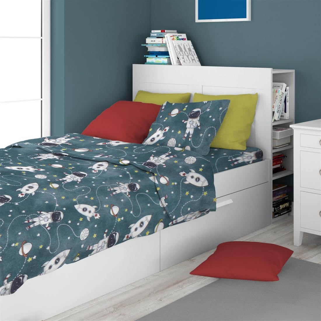 Σετ Παιδικά Σεντόνια Φανελένια Μονά 3 Τεμαχίων Dimcol Galaxy Travel 91 160X240 Petrol