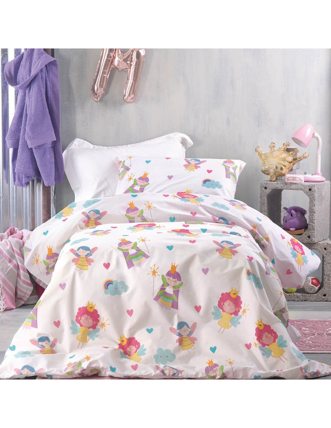 Σετ Παιδικά Σεντόνια Μονά με Λάστιχο 3 Τεμαχίων Rythmos Fairies 105x205+25