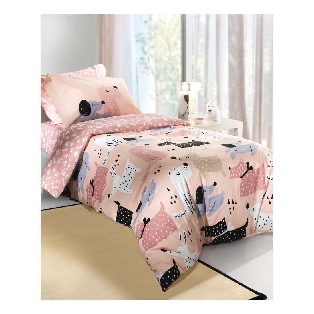 Τα παιδικά σεντόνια Doggy Pink της εταιρίας Saint Clair αγκαλιάζουν το παιδί σας, αφήνοντας μία αίσθηση τρυφερότητας. Ο καλύτερος φίλος του ανθρώπου, ο σκύλος, διακοσμεί το δωμάτιο του παιδιού. Κουτάβια σε διάφορα χρώματα και χαριτωμένες πατουσίτσες ζώων στολίζουν το κρεβάτι. Διαχρονικά και ανθεκτικά, 100 % βαμβακερά.