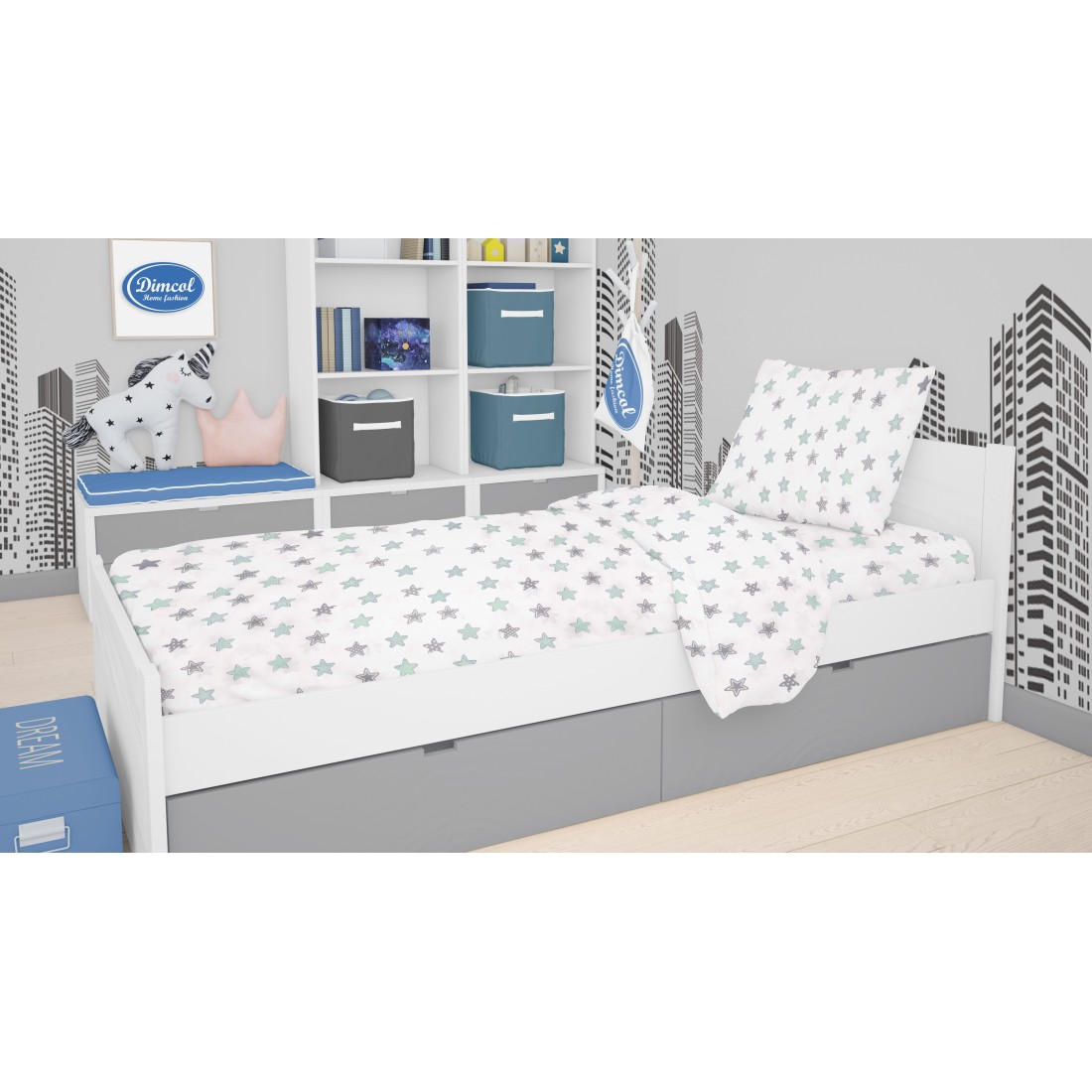 Σετ Σεντόνια 2 Τεμαχίων Dimcol Star 101 Green, εμπριμέ με χαρούμενα χρώματα και παραστάσεις, που περιλαμβάνει σεντόνι και μαξιλαροθήκη.