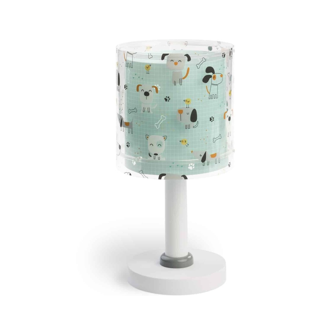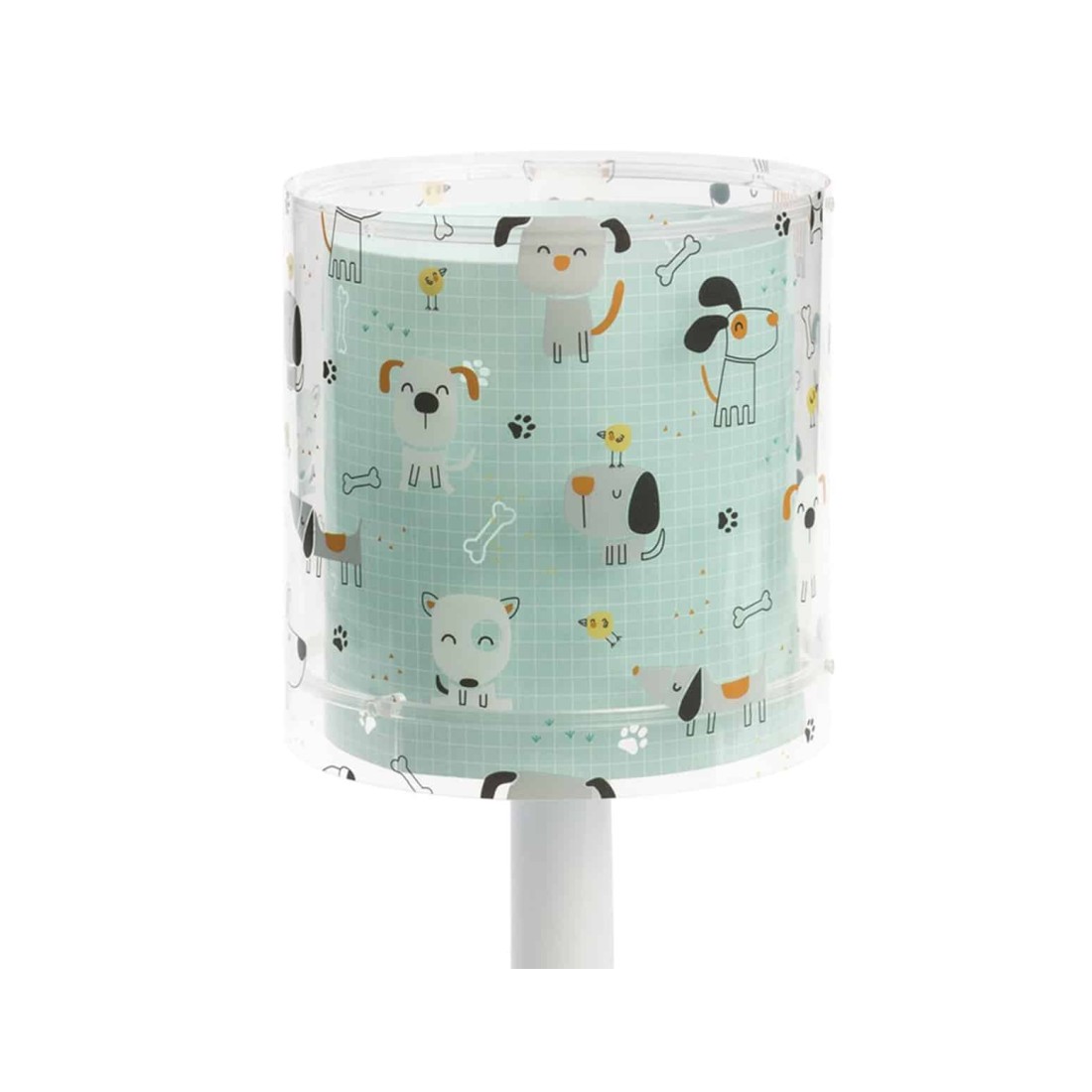 Κλασικής σχεδίασης παιδικό φωτιστικό κομοδίνου διπλού τοιχώματος με διάφανο εξωτερικό τοίχωμα. Διακόπτης on / off επάνω στο καλώδιο. Συνθετικό υλικό αντοχής πολυπροπυλενίου. Ιδανικό για γραφείο ή κομοδίνο. . Το Happy Dogs κομοδίνου φωτιστικό συμπληρώνει τα υπόλοιπα παιδικά φωτιστικά της συλλογής.