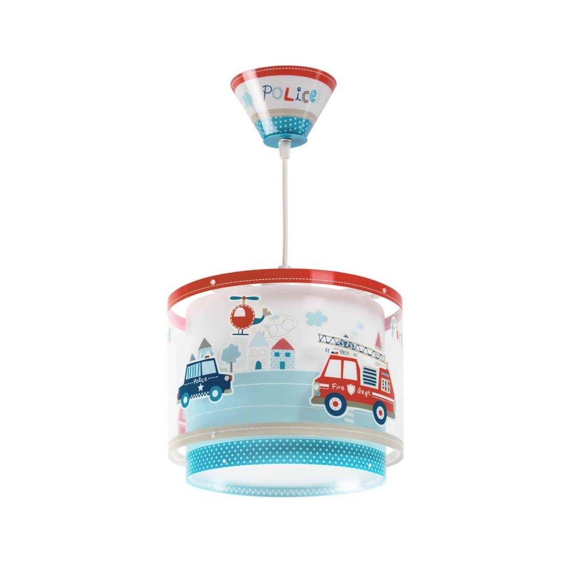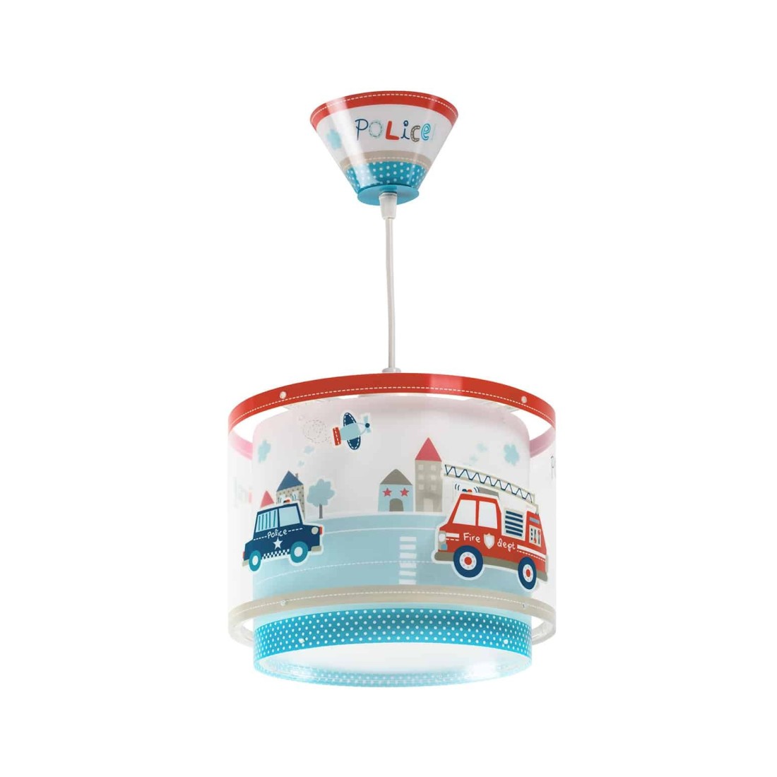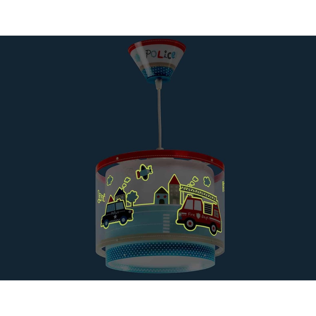Το Police κρεμαστό παιδικό φωτιστικό οροφής διπλού τοιχώματος έχει φωσφορίζοντα μέρη στο σκοτάδι και είναι κατάλληλο για γενικό φωτισμό. Συνθετικό υλικό αντοχής από πολυπροπυλένιο, συνθετικά και πλαστικά μέρη. Διπλού τοιχώματος με διάφανο το εξωτερικό του για μέγιστη φωτεινότητα. Κατασκευασμένο εξολοκλήρου στην Ευρώπη. Κιτ ανάρτησης ρυθμιζόμενο στο ύψος κατά την εγκατάσταση με διακοσμημένη κάλυψης σημείων σύνδεσης & στήριξης. Παρέχεται διαχυτής φωτός για ομοιόμορφο φωτισμό σε όλο το παιδικό δωμάτιο.