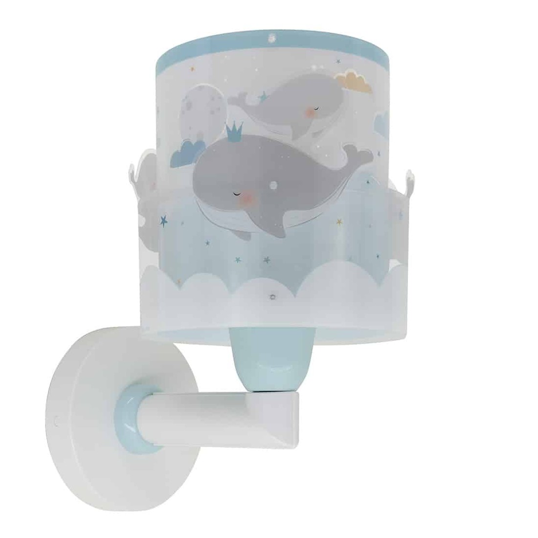 Απλίκα τοίχου με θέμα τη θάλασσα με χαριτωμένες φάλαινες, ιδανικά σχεδιασμένη για γενικό ή συμπληρωματικό φωτισμό. Φωτίζει και προσθέτει διασκεδαστικό χαρακτήρα και χαρούμενο άγγιγμα σε κάθε παιδικό δωμάτιο.  Η Whale Dreams Blue απλίκα τοίχου είναι κατάλληλη ακόμα και για διάβασμα πάνω από το προσκέφαλο του κρεβατιού.  Παρέχει ομοιόμορφο φως δημιουργώντας περιβάλλον που ενθαρρύνει τα παιδιά να επιδοθούν σε ότι τους αρέσει περισσότερο, διασκεδάζοντας ή δημιουργώντας!  Η Whale Dreams Blue απλίκα τοίχου συμπληρώνει τα υπόλοιπα παιδικά φωτιστικά της συλλογής και είναι κατασκευασμένη εξ ολοκλήρου στην Ευρώπη.