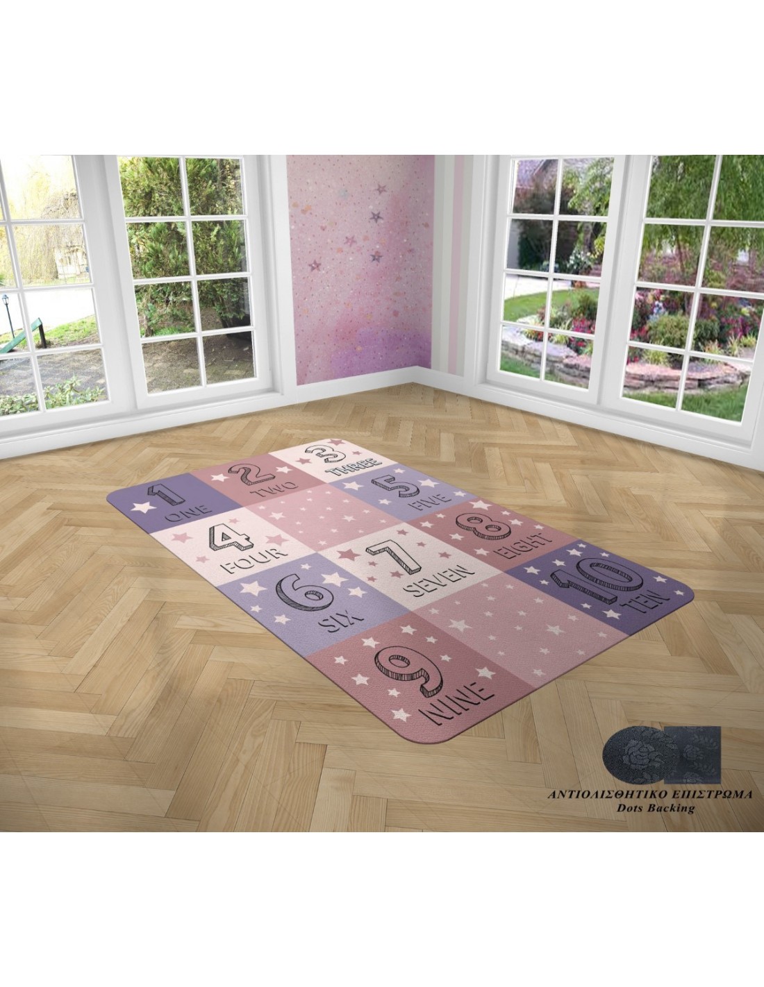 Χαλί με αντιολισθητικό επίστρωμα διαστάσεων 135x200 ιδανικό για το παιδικό δωμάτιο, ανθεκτικό στη καταπόνηση από το έντονο παιδικό παιχνίδι.