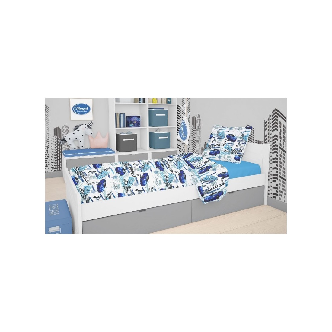 Παπλωματοθήκη Μονή Dimcol Speed Racer 291 Rotary Print, εμπριμέ με χαρούμενα χρώματα, για πάπλωμα με φερμουάρ.