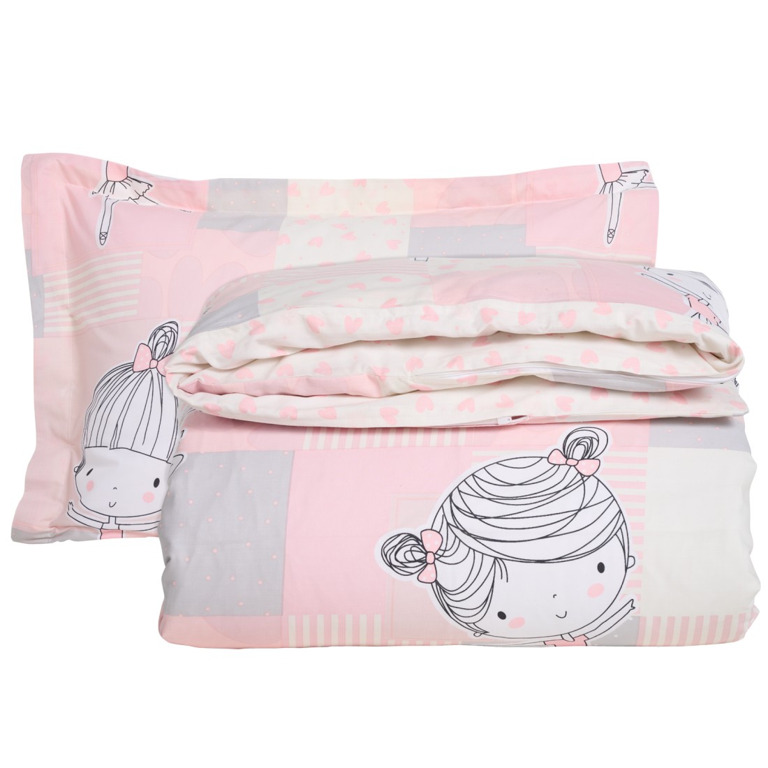 Σετ Παιδική Παπλωματοθήκη Μονή 2 Τεμαχίων Das Kids 4872 Γκρι- Κρεμ- Ροζ 160x240