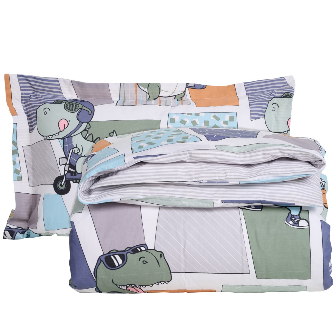 Σετ παπλωματοθήκη της σειράς Kid δύο όψεων. Είναι από 70% υποαλλεργικό βαμβάκι και 30% πολυεστέρα με πυκνότητα ύφανσης 150 TC. ιδιαίτερα απαλή στην αφή ανθεκτική στη χρήση. Το σετ περιλαμβάνει μία παπλωματοθήκη διάστασης 160Χ240εκ και μία μαξιλαροθήκη 50Χ70+5εκ. Das home...makes your house a home!-Πλύσιμο στους 40°C. Σιδέρωμα σε μέτρια θερμοκρασία. Όχι χρήση χλωρίου ή λευκαντικού. Όχι στεγνό καθάρισμα.