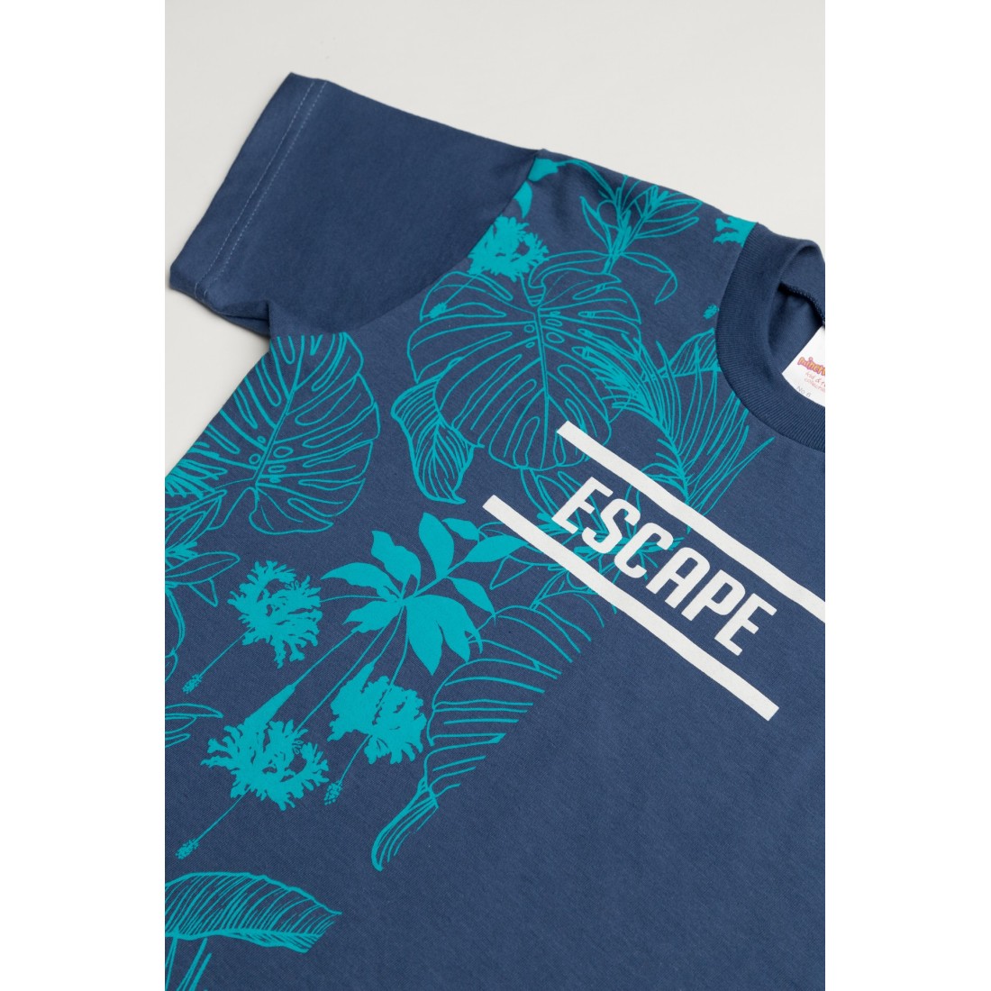 Παιδική θερινή πιτζάμα για αγόρι από 100% απαλό βαμβακερό ύφασμα υψηλής ποιότητας. Το σετ περιλαμβάνει κοντομάνικη μονόχρωμη μπλούζα με στρογγυλή λαιμόκοψη, tropical τύπωμα και μονόχρωμη βερμούδα με ελαστική μέση. Συνδυάστε με τις αντίστοιχες ανδρικές πιτζάμες και δημιουργήστε το απόλυτο father & son look.