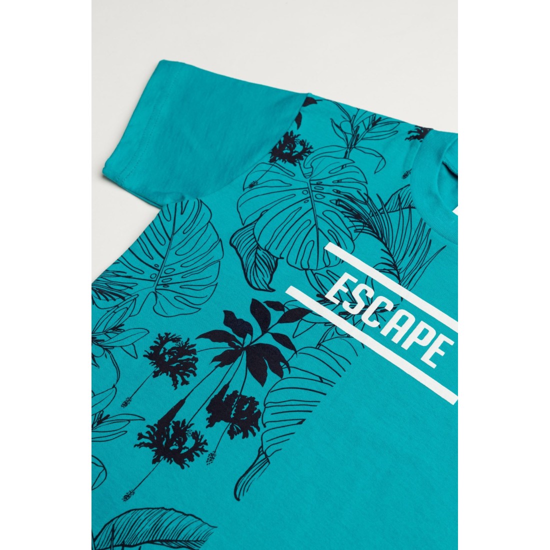 Παιδική θερινή πιτζάμα για αγόρι από 100% απαλό βαμβακερό ύφασμα υψηλής ποιότητας. Το σετ περιλαμβάνει κοντομάνικη μονόχρωμη μπλούζα με στρογγυλή λαιμόκοψη, tropical τύπωμα και μονόχρωμη βερμούδα με ελαστική μέση. Συνδυάστε με τις αντίστοιχες ανδρικές πιτζάμες και δημιουργήστε το απόλυτο father & son look.