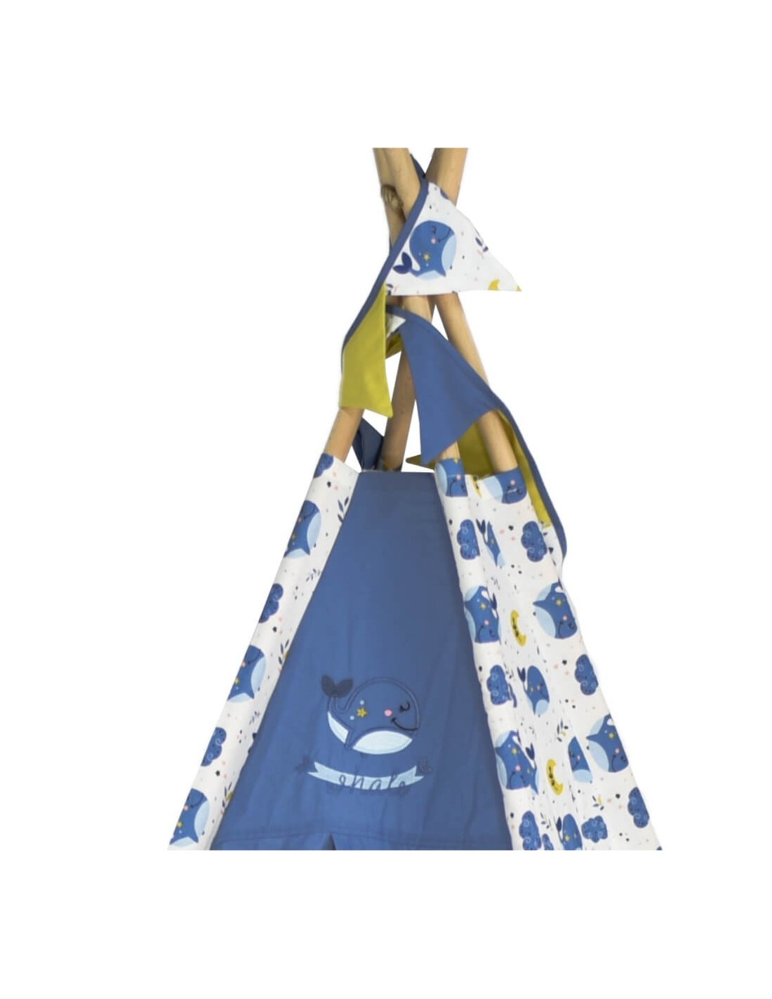 Ο σκελετός της σκηνής αποτελείται από 4 ξύλινες ράβδους, ενώ το ύφασμα της είναι 100% βαμβακερό και πλένεται στο πλυντήριο.