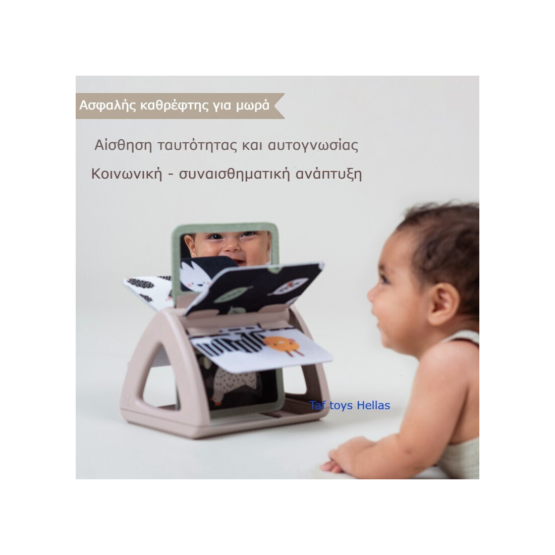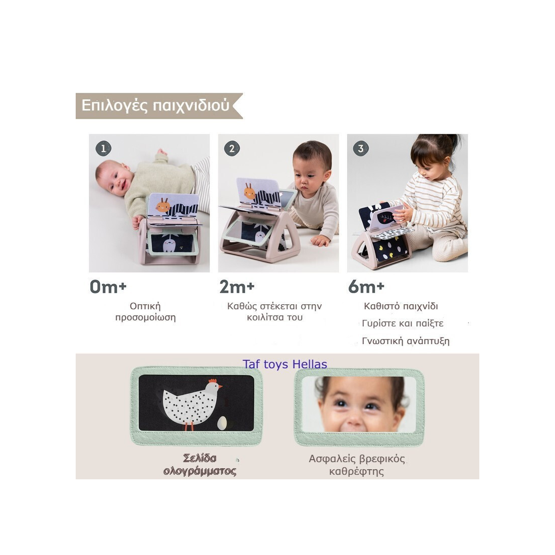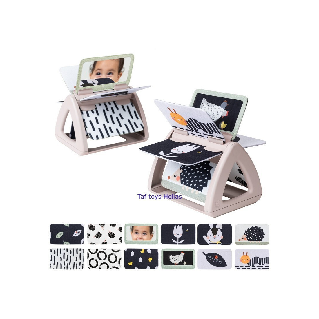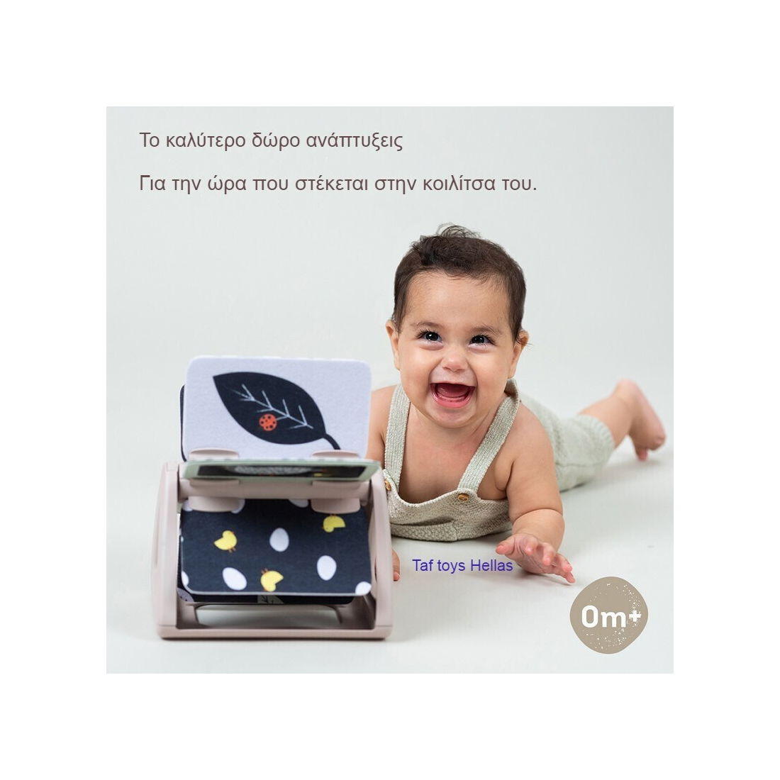 Σας παρουσιάζουμε το Black & White Rattling Spinning Book από την Taf Toys, έναν αισθητηριακό σύντροφο που έχει σχεδιαστεί ειδικά για να διεγείρει την αναπτυσσόμενη όραση ενός νεογέννητου. Ο ασπρόμαυρος συνδυασμός χρωμάτων των σελίδων με εικόνες υψηλής αντίθεσης και ο ήχος που παράγεται καθώς περιστρέφονται οι σελίδες του βιβλίου μας, έχουν σχεδιαστεί για να εμπλέκουν και να διεγείρουν το οπτικό και νευρικό σύστημα του μωρού. 10 μαγευτικές ασπρόμαυρες σελίδες, ειδικά σχεδιασμένες για να εμπνέουν και να τονώνουν το οπτικό και νευρικό σύστημα του μωρού σας, βοηθώντας έτσι στην βελτίωση της όρασης του μωρού, ενισχύοντας την ικανότητα εστίασης σε μία μόνο εικόνα και καλλιεργώντας την πρώιμη γνωστική ανάπτυξη. Επιπλέον ο καθρέφτης και η σελίδα ολογράμματος, εισάγει τα μωρά σε αστραφτερά στοιχεία, εμπλουτίζοντας την οπτική τους εξερεύνηση. Ο απαλός ήχος από κροτάλισμα κατά την περιστροφή των σελίδων, προσθέτει έναν ενθουσιασμό στο χρόνο παιχνιδιού, που υποστηρίζει την πρώιμη γνωστική ανάπτυξη. Ιδανικό παιχνίδι για την ώρα που στέκεται στην κοιλίτσα του και εξαιρετική επιλογή παιχνιδιού για νεογέννητα 0-3 μηνών. Το Ασπρόμαυρο Βιβλίο μας δεν είναι απλώς ένα παιχνίδι για νεογέννητα αλλά προάγει επίσης τη γνωστική ανάπτυξη ενισχύοντας την αισθητηριακή τους εμπειρία με έναν συναρπαστικό, διαδραστικό τρόπο. Το παιδικό βιβλίο υψηλής αντίθεσης βοηθά στην ανάπτυξη της οπτικής οξύτητας και της εστίασης. Τα ασπρόμαυρα παιδικά παιχνίδια 0-3 μηνών έχουν σχεδιαστεί για να διεγείρουν και να δεσμεύουν τα μωρά στους πρώτους μήνες τους, παρέχοντας έναν διαδραστικό τρόπο μάθησης. Είτε πρόκειται για την ώρα που στέκεται στην κοιλίτσα του, είτε για μια γαλήνια ιστορία πριν τον ύπνο, αυτό το ασπρόμαυρο παιδικό βιβλίο υψηλής αντίθεσης είναι ένα ουσιαστικό μέρος της πρώιμης ανάπτυξης του μωρού σας. Δεν είναι απλώς ένα βιβλίο, είναι ένα εργαλείο για την ανάπτυξη των γνωστικών ικανοτήτων και των κινητικών δεξιοτήτων του μωρού σας, καθιστώντας το μια πολύτιμη προσθήκη στα απαραίτητα παιχνίδια του μωρού σας. Στην Taf Toys καταλαβαίνουμε ότι η επιλογή του κατάλληλου αναπτυξιακού παιχνιδιού για το παιδί σας είναι μια σοβαρή απόφαση. Η μεγάλη γκάμα προϊόντων της Taf Toys σας παρέχει αναπτυξιακά παιχνίδια που αντιστοιχούν στην ηλικία του μωρού σας και που είναι προκλητικά, διασκεδαστικά και εμπνέουν τη φαντασία. Όλα τα παιχνίδια μας έχουν δημιουργηθεί με σκοπό να προωθήσουν τη συναισθηματική, γνωστική και σωματική ανάπτυξη του μωρού σας κατά τα δύο πρώτα χρόνια ανάπτυξής του.