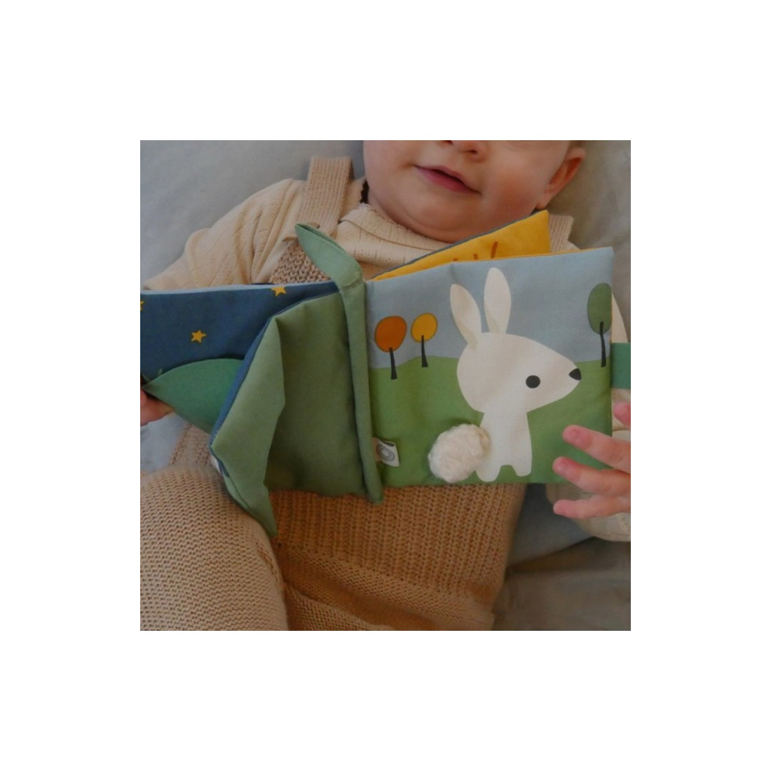 Το υφασμάτινο βιβλίο RABBIT'S DAY είναι ένα γλυκό βιβλίο δραστηριοτήτων για τη μέρα ενός μικρού κουνελιού της δανέζικης εταιρείας Franck & Fischer. Εσείς και το μωρό σας θα λατρέψετε να ζήσετε τη μέρα του μικρού κουνελιού από το πρωί μέχρι το βράδυ. Το βιβλίο δραστηριοτήτων έχει διασκεδαστικά χαρακτηριστικά, όπως ήχο κροτάλισμα, καθρέφτη και βροχή σε βαμβακερές χορδές που θα λατρέψει το μωρό να αγγίζει για αισθητηριακή διέγερση και ανάπτυξη κινητικών δεξιοτήτων. Βιβλίο από ύφασμα κουνελιού που κατασκευάζεται βιώσιμα στην Ινδία με 100% πιστοποιημένο οργανικό βαμβάκι.