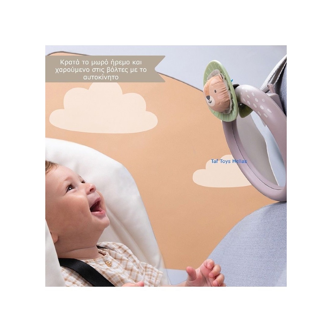 Παρουσιάζουμε τον νέο μας καθρέφτη παιδικού αυτοκινήτου Taf Toys από την συλλογή μας Savannah collection . Αυτός ο καθρέφτης καθίσματος αυτοκινήτου ασφαλείας έχει σχεδιαστεί για βρέφη που κοιτούν με κατεύθυνση αντίθετη από την φορά του αυτοκινήτου παρέχοντας μια οθόνη καθαρής θέασης για τους γονείς. Μπορείτε να παρακολουθείτε το μικρό σας χωρίς να γυρίσετε, κάνοντας το ταξίδι σας ασφαλέστερο και πιο βολικό. Ο καθρέφτης είναι ασφαλής για τα μωρά και κυρτός για να προσφέρει μια απρόσκοπτη και απροβλημάτιστη θέαση. Είναι στερεωμένο με ασφάλεια στο προσκέφαλο του καθίσματος χρησιμοποιώντας έναν ασφαλή ιμάντα ασφάλισης Velcro. Αυτό διασφαλίζει ότι ο καθρέφτης είναι σταθερός και χωρίς ταλαντεύσεις, παρέχοντας στο μωρό σας ένα άνετο ταξίδι. Ενθαρρύνει επίσης τη γνωστική ανάπτυξη στο παιδί σας. Ο καθρέφτης αιχμαλωτίζει την προσοχή του μωρού σας και εξάπτει τη φαντασία του, ενθαρρύνοντας την πρώιμη μάθηση και τη δέσμευση. Τα ζωηρά χρώματα και η ελκυστική σχεδίαση παρέχουν αισθητηριακή διέγερση στο μωρό σας. Με τη Savannah the lion, αυτός ο παιχνιδιάρικος καθρέφτης διεγείρει τις οπτικές αισθήσεις του μωρού σας, παρέχοντας μια χαλαρωτική και διασκεδαστική εμπειρία κατά τη διάρκεια της βόλτας με το αυτοκίνητο. Αυτός ο καθρέφτης του βρεφικού αυτοκινήτου είναι κάτι περισσότερο από ένας απλός καθρέφτης, είναι ένα διασκεδαστικό παιχνίδι που διασκεδάζει το μικρό σας και βοηθά στην ανάπτυξή του. Κάντε κάθε βόλτα με αυτοκίνητο μια απολαυστική εμπειρία για το μικρό σας με τον καθρέφτη αυτοκινήτου μας. Η μεγάλη γκάμα προϊόντων της Taf Toys σας παρέχει αναπτυξιακά παιχνίδια που αντιστοιχούν στην ηλικία του μωρού σας και που είναι προκλητικά, διασκεδαστικά και εμπνέουν τη φαντασία. Όλα τα παιχνίδια μας έχουν δημιουργηθεί με σκοπό να προωθήσουν τη συναισθηματική, γνωστική και σωματική ανάπτυξη του μωρού σας κατά τα δύο πρώτα χρόνια ανάπτυξής του. Στόχος μας είναι να βοηθήσουμε το μωρό σας να δημιουργήσει τα θεμέλια για μια υγιή και ευτυχισμένη αναπτυξιακή πορεία. Κείμενο και φωτογραφίες των προϊόντων δημοσιεύονται μόνο με την γραπτή συγκατάθεση από την Taf Toys Hellas όπου και αποτελούν πνευματική ιδιοκτησία.