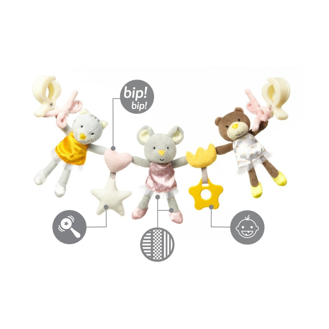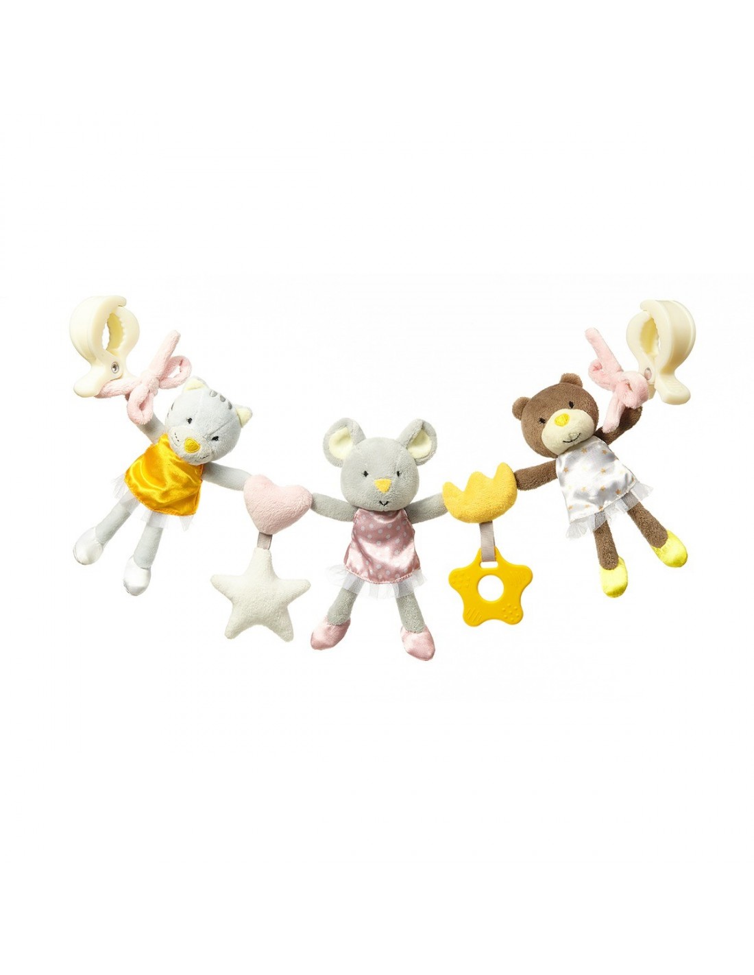Η μορφή του τόξου σας επιτρέπει να κρεμάτε το παιχνίδι σε κάθε είδους καθίσματα αυτοκινήτου ή καροτσάκια. Χάρη σε αυτό, μπορεί να συνοδεύει το παιδί σας σε ταξίδια και βόλτες.
