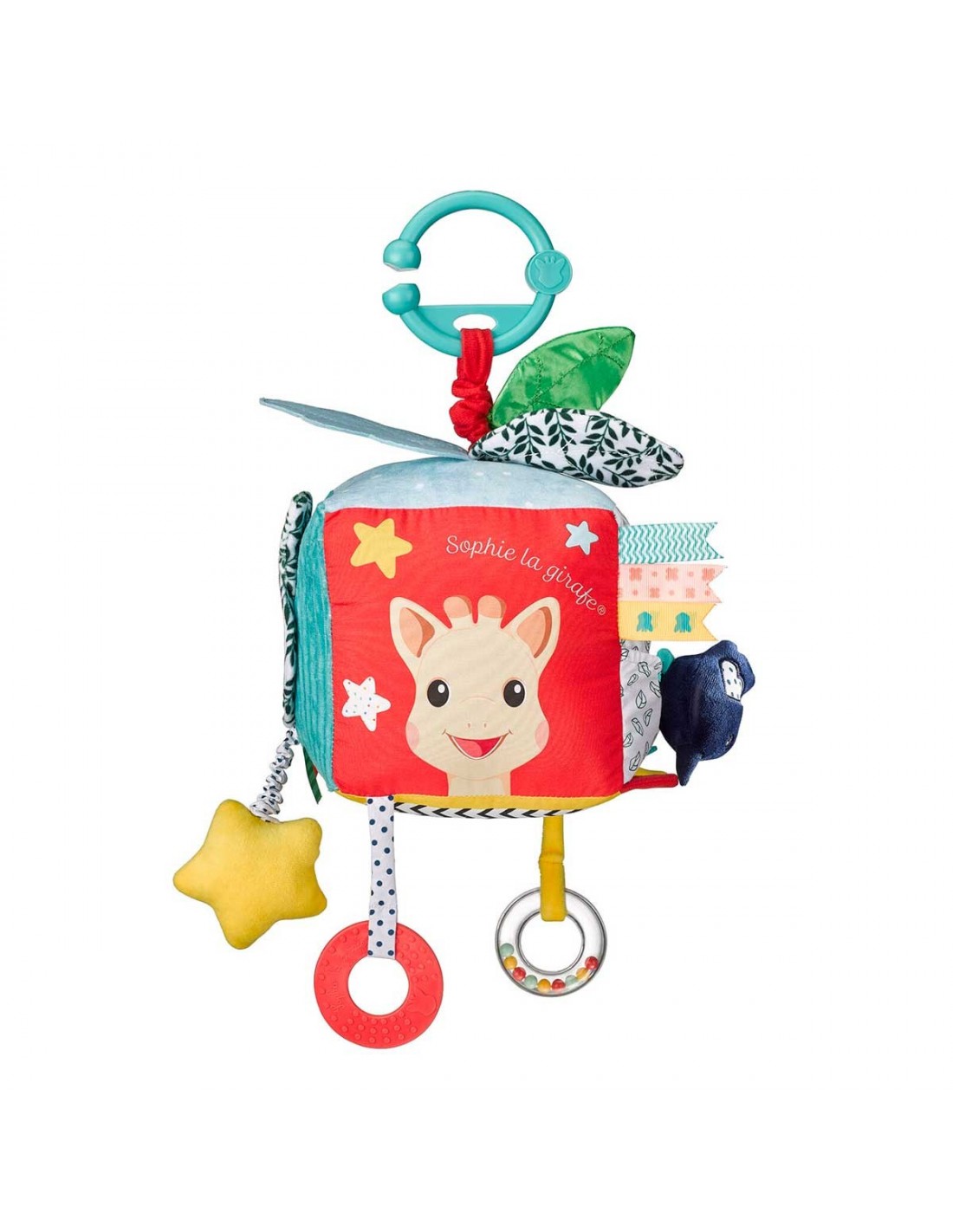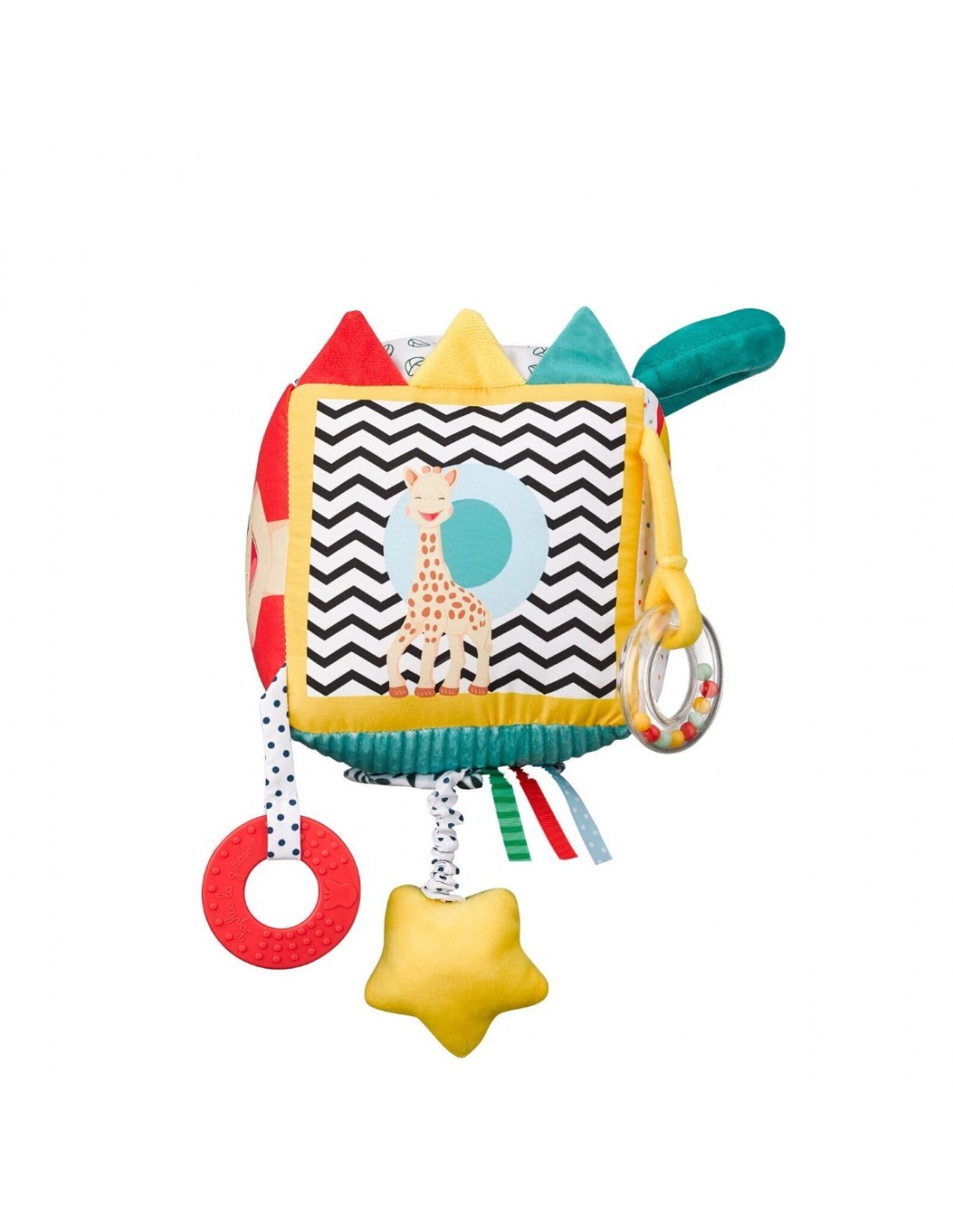 Ο αισθητηριακός, υφασμάτινος κύβος της Σόφις της καμηλοπάρδαλης προσφέρει πολλές δραστηριότητες για να απασχολήσει και να "ξυπνήσει" τις αισθήσεις του μωρού σας.