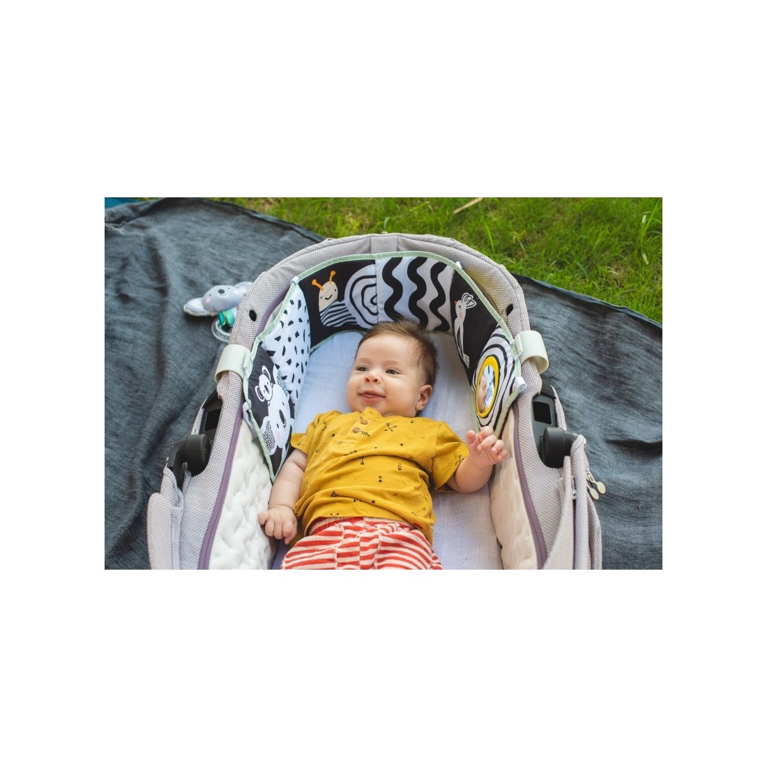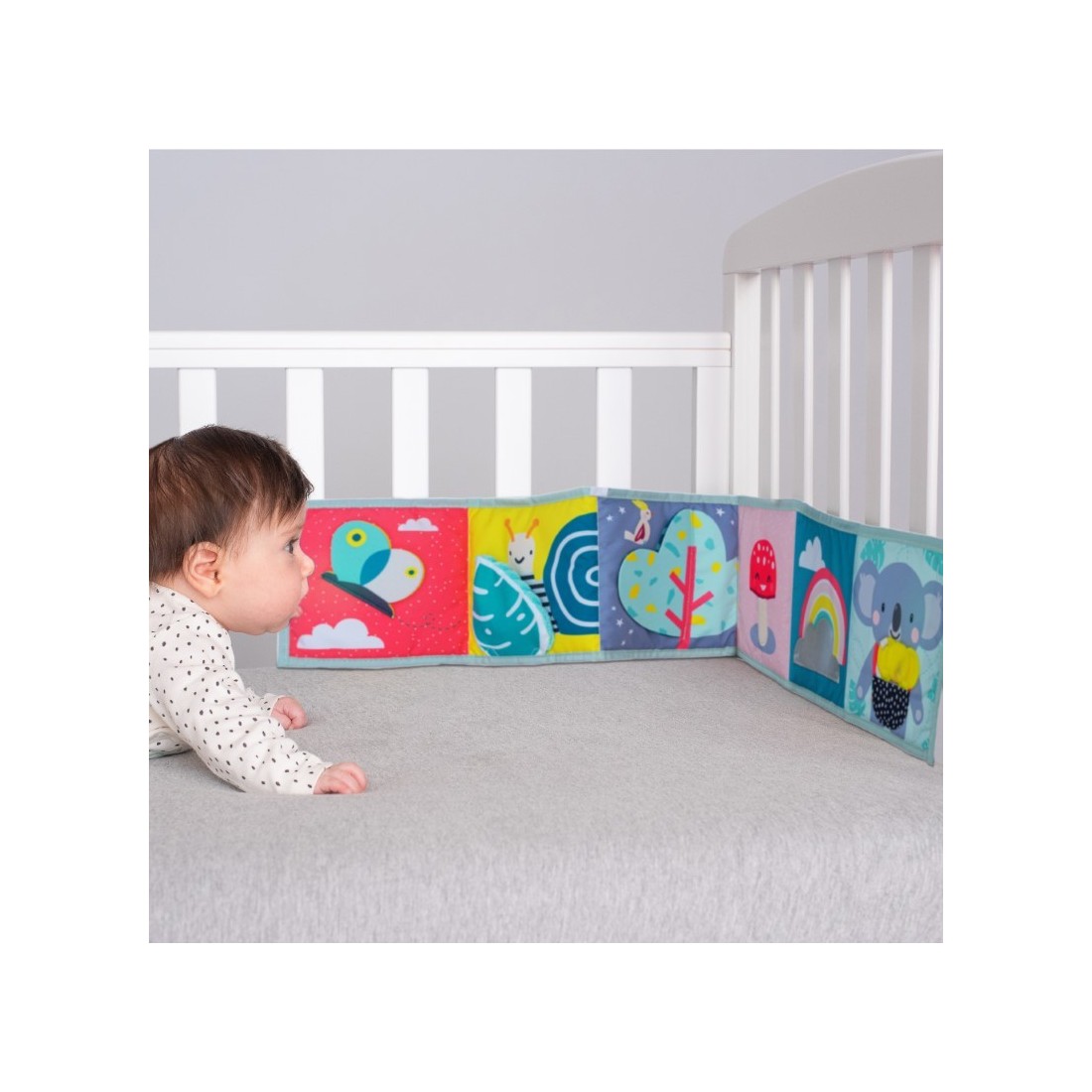 Πλευρά 1: Χρώματα και μοτίβα υψηλής αντίθεσης, βρεφικός καθρέφτης ασφαλείας και εικόνες προσώπων για πρώιμη οπτική διέγερση, ανάπτυξη των αισθήσεων και της συναισθηματικής νοημοσύνης του μωρού από την πρώτη κιόλας ημέρα.