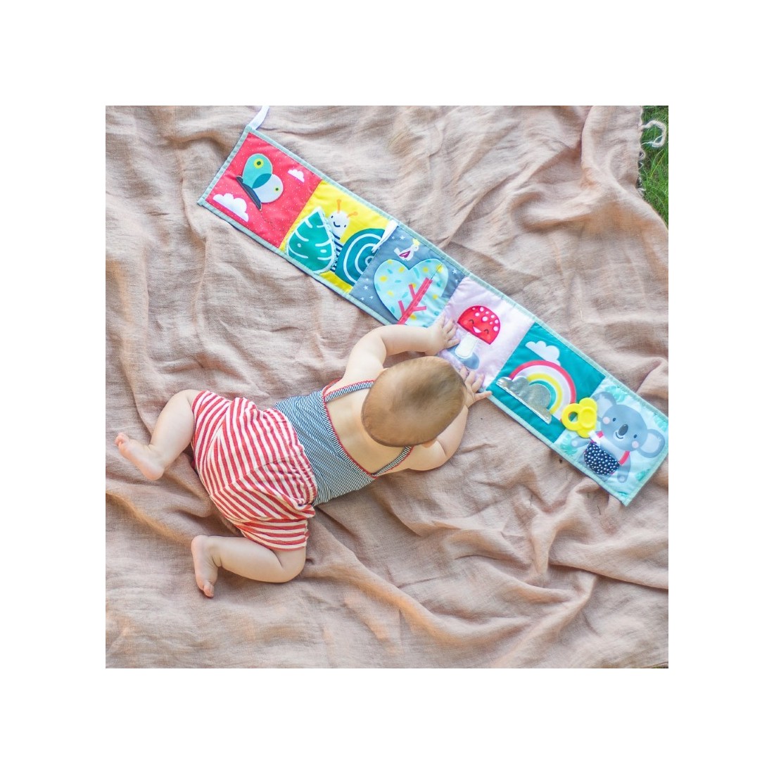 Είναι ένα μοναδικό, μαλακό βιβλίο, που βοηθά στη διδασκαλία της έννοιας της αιτίας και του αποτελέσματος καθώς το μωρό παίζει με τα τσαλακωμένα μέρη και τις 3D δραστηριότητες. Προσφέρει οπτική διέγερση και ενθαρρύνει την εστίαση.