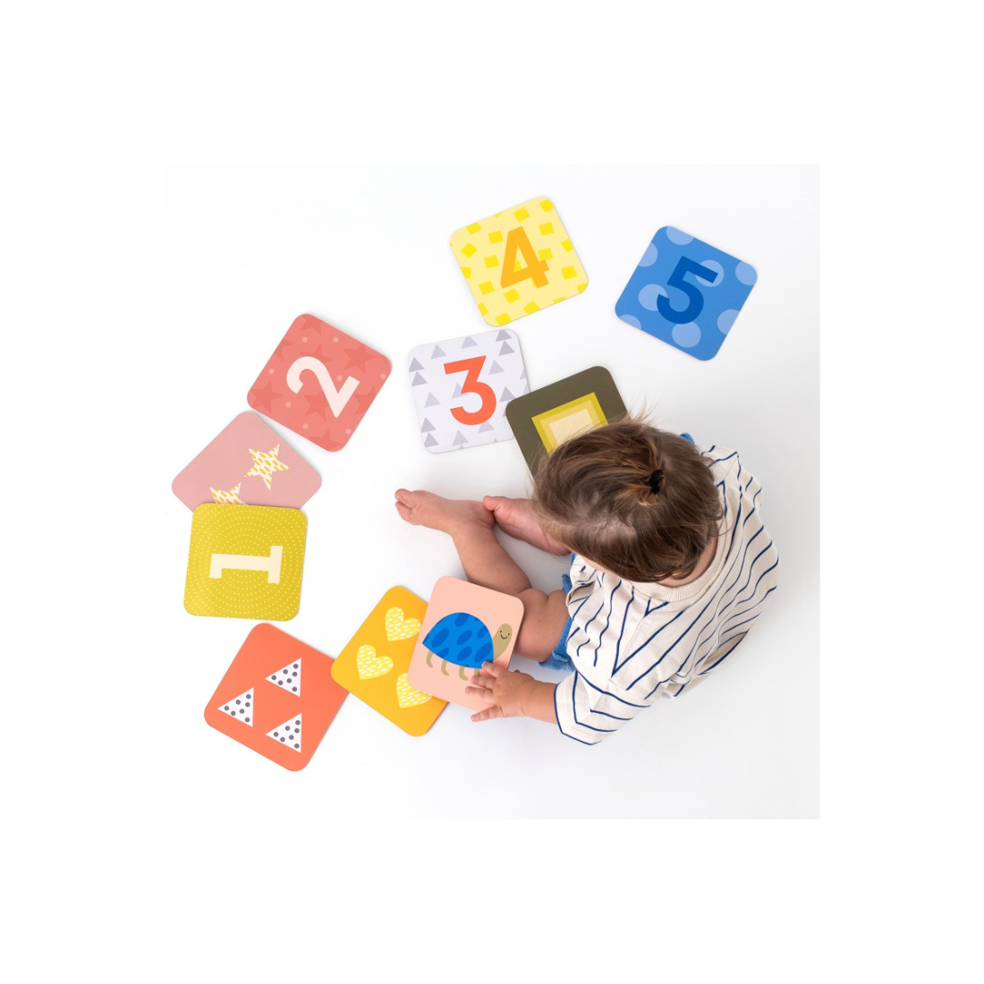 Σετ 15 καρτών  με 30 εικόνες έντονης χρωματικής αντίθεσης ,βρεφικό καθρέφτη ασφαλείας και 2 καινοτόμες βάσεις για στήριξη των καρτών σε όρθια θέση όταν το παιδί παίζει στηριζόμενο στην κοιλίτσα του.. Οι εικονογραφημένες κάρτες  αναπτύσσουν την οπτική αντίληψη του μωρού και υποστηρίζουν 3 αναπτυξιακά στάδια.