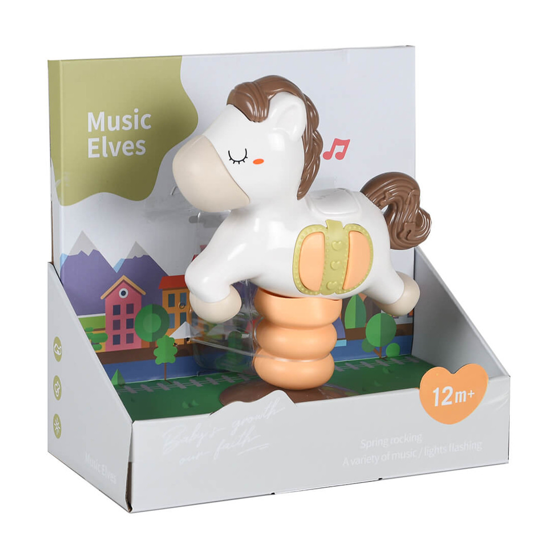 Το κουνιστό αλογάκι ( swing horse) είναι ένα παιχνίδι με βεντούζα, ώστε να στερεώνεται παντού και να συντροφεύει το παιδάκι σας σε κάθε χώρο που πηγαίνει. Αφορά παιδάκια από 12+ μηνών με σκοπό να τα βοηθήσει να αναπτυχθούν οι αισθήσεις του παρατηρώντας το περιβάλλον γύρω τους και τη φαντασία του, δημιουργώντας ιστορίες. Διαθέτει φως και ήχους/μελωδίες ανάλογα με το κουμπάκι που θα πατήσει.