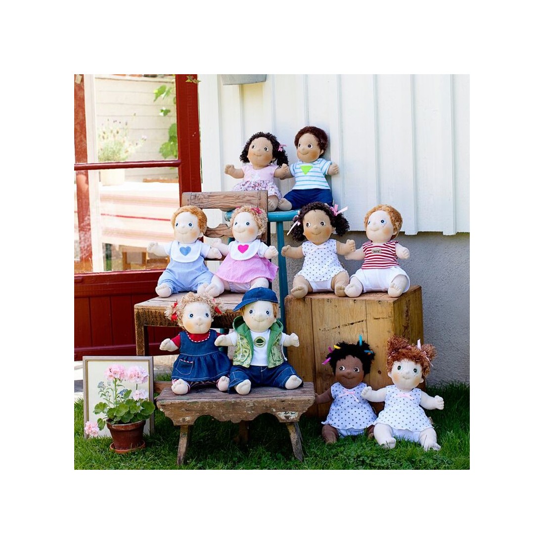 Όλες οι κούκλες μπορούν να πλυθούν στο πλυντήριο στους 30°C και να μπαίνουν στο στεγνωτήριο σε χαμηλή θερμοκρασία. Τα ρούχα τους πρέπει να πλένονται στο χέρι.