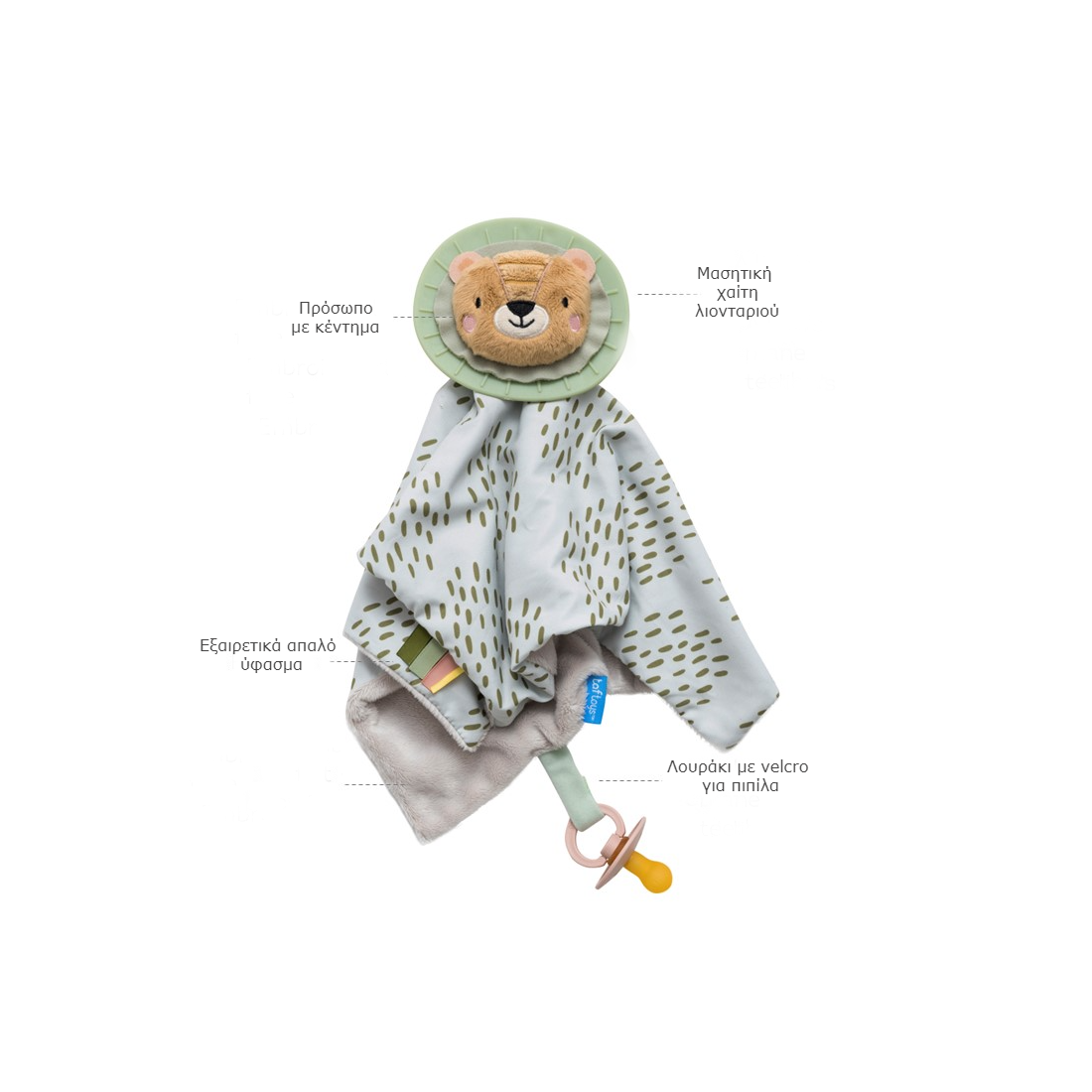 Το πρώτο παιχνίδι προσκόλλησης του μωρού σας με τον αγαπημένο μας Χάρι το λιοντάρι με χαίτη οδοντοφυΐας και λουράκι Velcro για την τοποθέτησης της πιπίλας, για να μην την χάνει ποτέ!