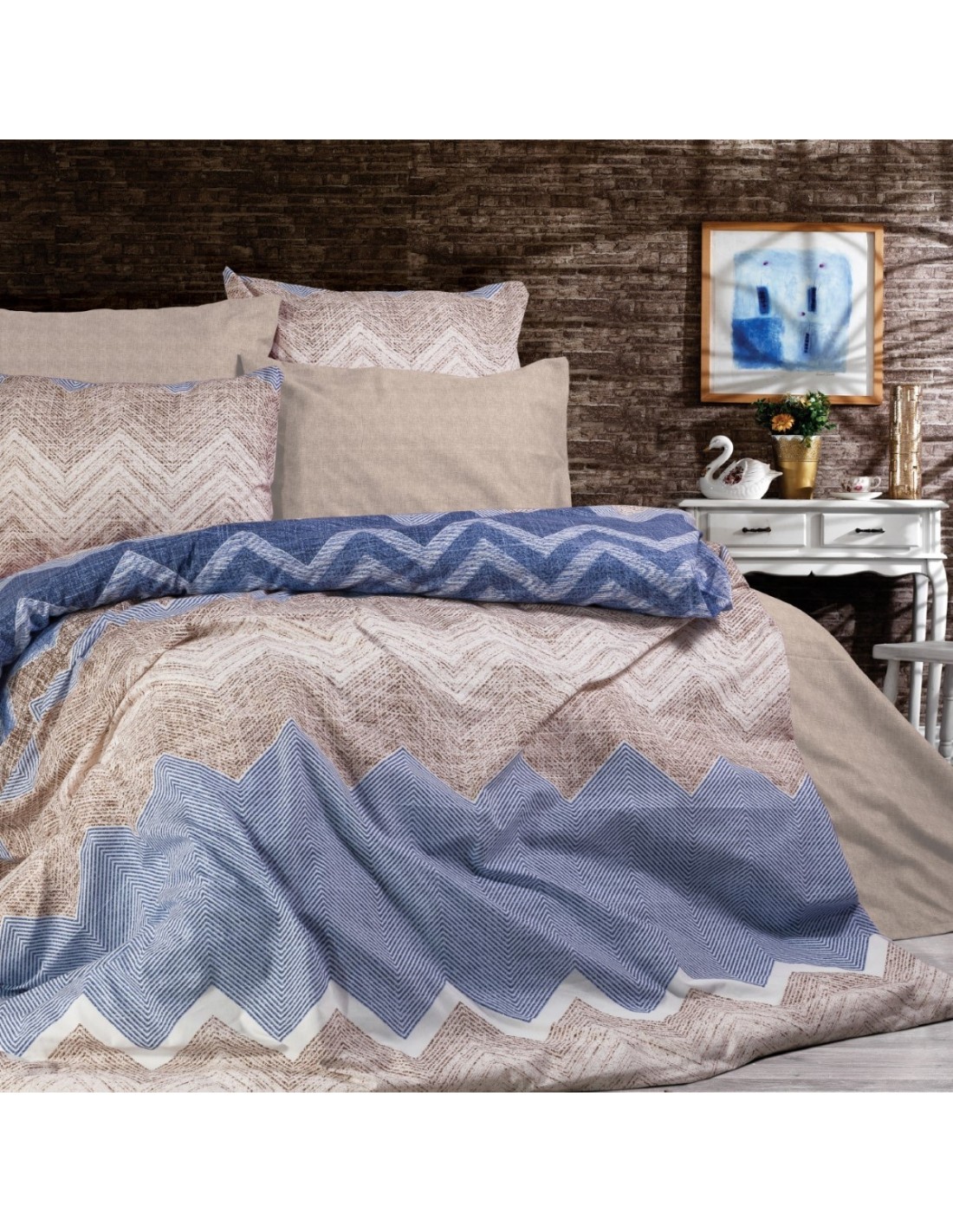 30% Polyester, 144 TC, σε χαρούμενα και απαλά χρώματα, με μοντέρνες και σύγχρονες παραστάσεις και στη κάτω πλευρά από Μονόχρωμο Mocha Shadow κομποζέ ύφασμα της ίδιας σύνθεσης για προστασία στο πάπλωμα σας και χρώματα στο κρεβάτι σας. Κατασκευάζεται στην Ελλάδα.