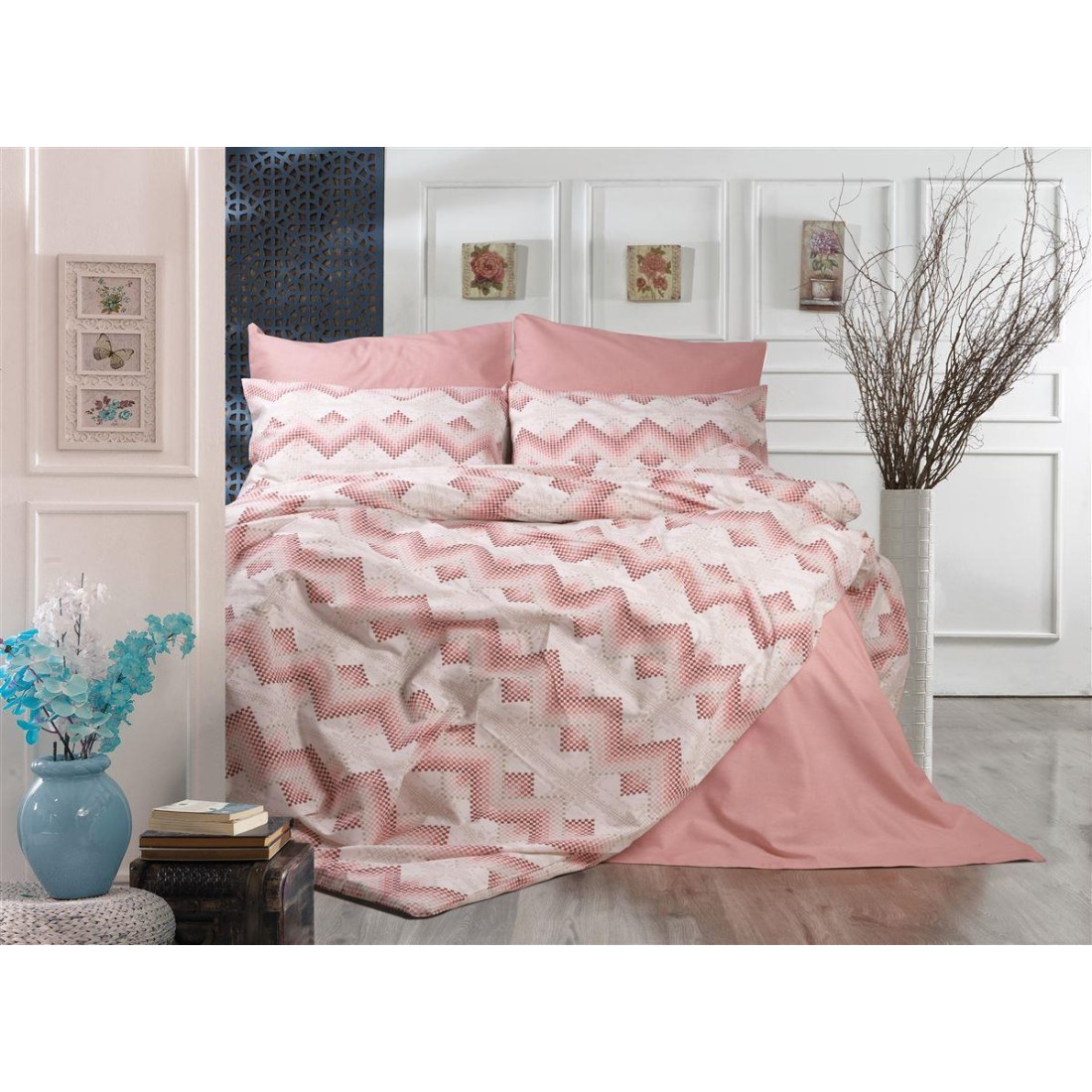 Παπλωματοθήκη Μονή Dimcol Πηνελόπη 441 160X240 Coral 70/30 Cott/Pol