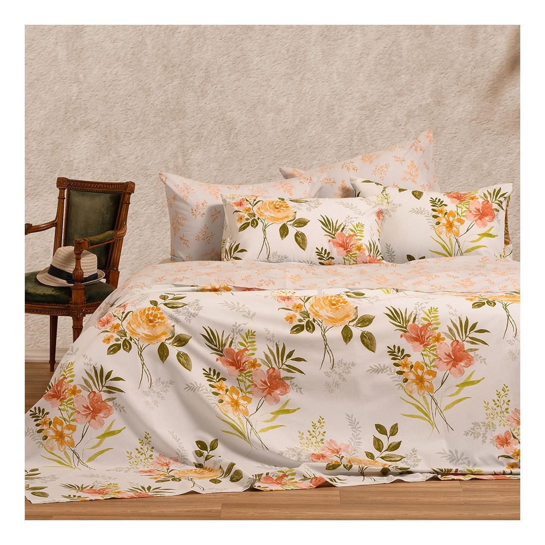 Παπλωματοθήκη Sylvie με floral σχέδιο από τη σειρά Casual Line! Κατασκευασμένη από 50% βαμβακερό - 50% πολυεστερικό ύφασμα 144 κλωστών. με το σχέδιο του πανωσέντονου και στις δυο πλευρές. Έχει απαλή υφή. λείο φινίρισμα και είναι πολύ εύκολη στο σιδέρωμα. Διατίθεται σε δυο αποχρώσεις. Διατίθεται σε υφασμάτινη συσκευασία-πουγκί.