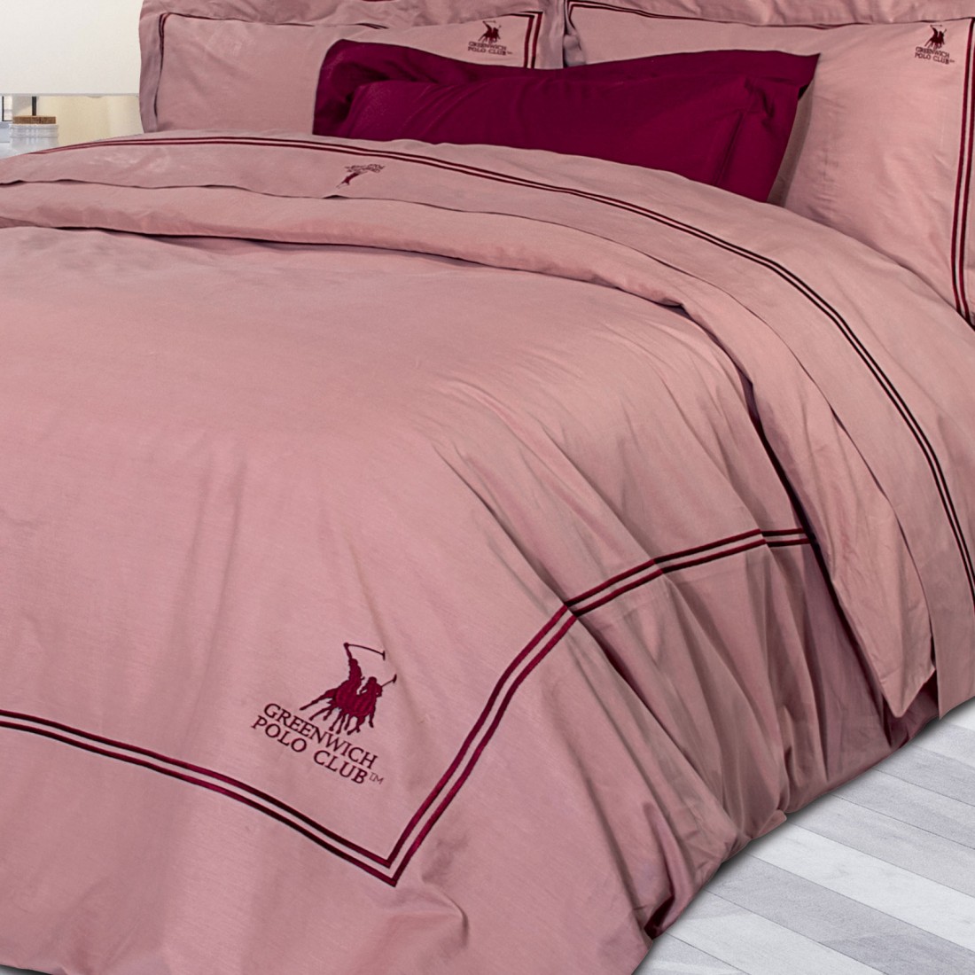 Σετ παπλωματοθήκη Greenwich Polo Club με κέντημα της σειράς Premium. Είναι από 100% βαμβάκι σατέν με πυκνότητα ύφανσης 210TC και με ειδική επεξεργασία για εύκολο σιδέρωμα. Το σετ αποτελείται από μία παπλωματοθήκη διαστάσεων 220Χ240εκ και δύο μαξιλαροθήκες 50Χ70+7εκ με περιμετρική ραφή oxford. Αυτό που χαρακτηρίζει την συλλογή είναι οι απαλές αποχρώσεις, τα διακριτικά σχέδια και το διαχρονικό ύφος. Επιλέξτε Greenwich Polo Club για να απολαύσετε ποιότητα, στυλ και πολυτέλεια.