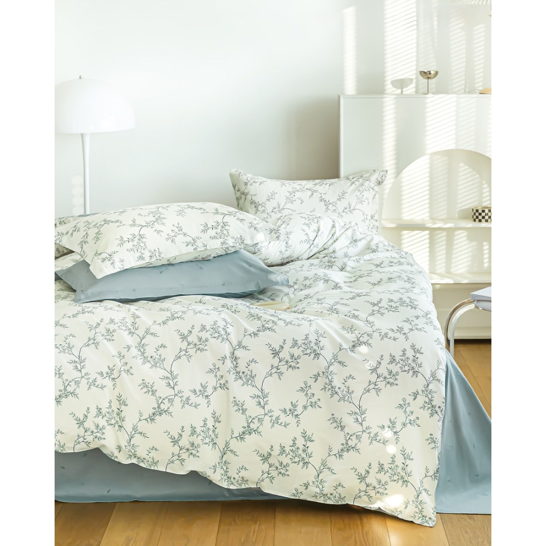 Μια υπέρκομψη υπέρδιπλη παπλωματοθήκη διπλή όψης. με τη μία πλευρά να είναι σε λευκό φόντο και διακριτικά λουλούδια σε ίδια απόχρωση με την πίσω πλευρά. Είναι κατασκευασμένη από 100% βαμβακοσατέν 200 κλωστών με νήματα πενιέ. για να προσφέρει απαλή αίσθηση και ευκολία στο σιδέρωμα. Διαθέτει κλείσιμο με φερμουάρ. Στο σετ περιλαμβάνονται δύο μαξιλαροθήκες τύπου oxford διπλής όψης. *Το σχέδιο στις μαξιλαροθήκες ενδέχεται να διαφέρει από αυτό της φωτογραφίας. καθώς η εταιρεία παράγει μαξιλαροθήκες από όλο το σχέδιο του υφάσματος και τις συσκευάζει με τυχαία σειρά. ** Συνδυάστε τα με τα υπόλοιπα είδη του ιδίου σετ για ένα ολοκληρωμένο αποτέλεσμα. ΦΡΟΝΤΙΔΑ/ ΟΔΗΓΙΕΣ ΠΛΥΣΗΣ Πλύσιμο σε μέγιστη θερμοκρασία νερού 40C. Απαγορεύεται η χρήση λευκαντικών ουσιών ή χλωρίνης. Στεγνωτήριο σε μεσαία θερμοκρασία. Σιδέρωμα σε μεσαία θερμοκρασία. Απαγορεύεται το στεγνό καθάρισμα.