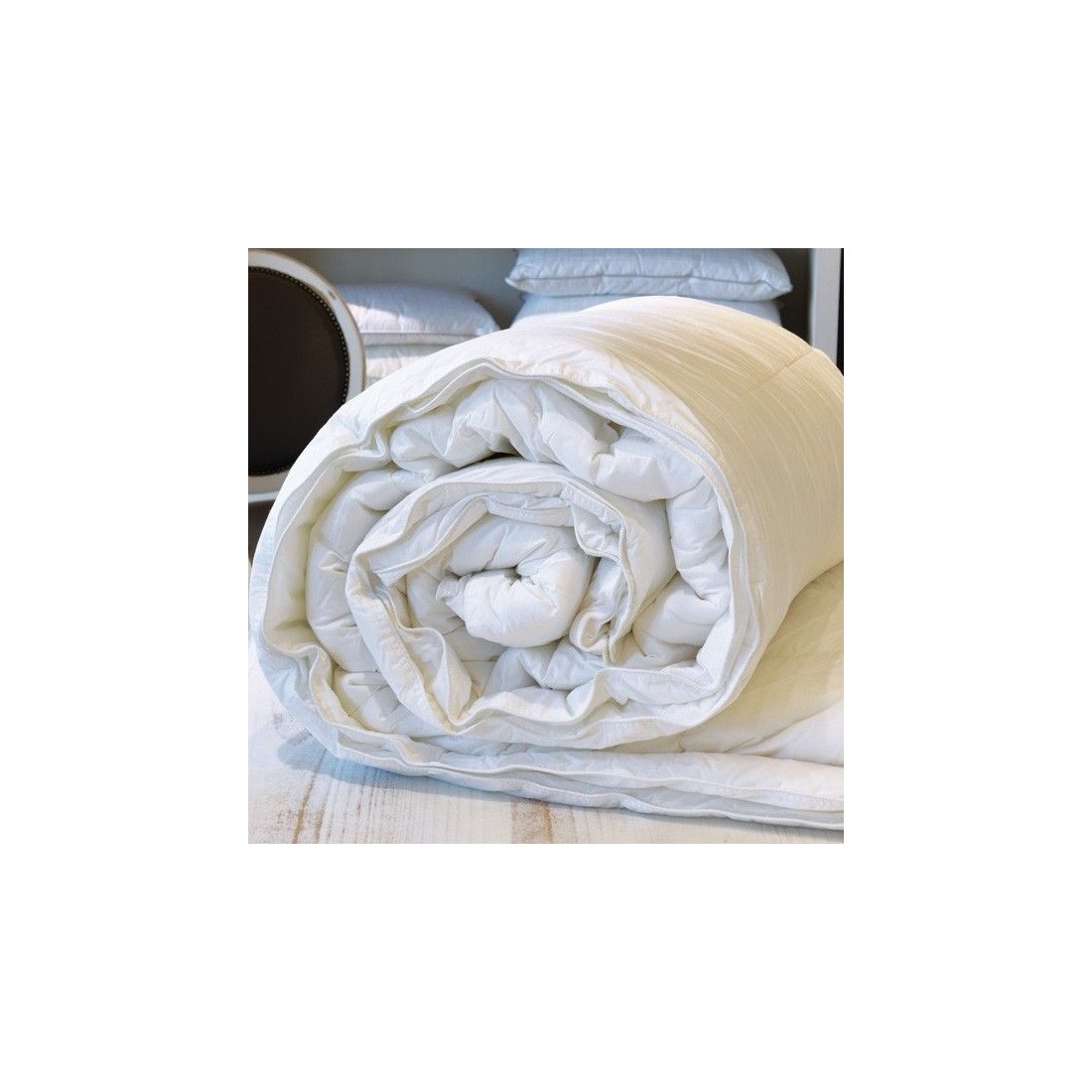 Πάπλωμα (δύο σε ένα) από φίνο βαμβακερό ύφασμα περκάλι και γέμισμα με υποαλλεργικό υλικό 3D hollowfiber συνολικού βάρους 400gr/m². Αποτελείται από δύο ξεχωριστά παπλώµατα διαφορετικού βάρους που ενώνονται µε τρούκς για όλες τις εποχές του χρόνου, ένα βάρους 130gr/m² ιδανικό για άνοιξη ή φθινόπωρο κι ένα δεύτερο 270gr/m² ιδανικό για χειμώνα σε σπίτια με ικανοποιητική θέρμανση. Και τα δύο μαζί ενωμένα είναι ιδανικά για συνθήκες χαμηλών θερμοκρασιών. Σuνοδεύεται με θήκη φύλαξης από nonwoven. Πλενόμενο στο πλυντήριο.