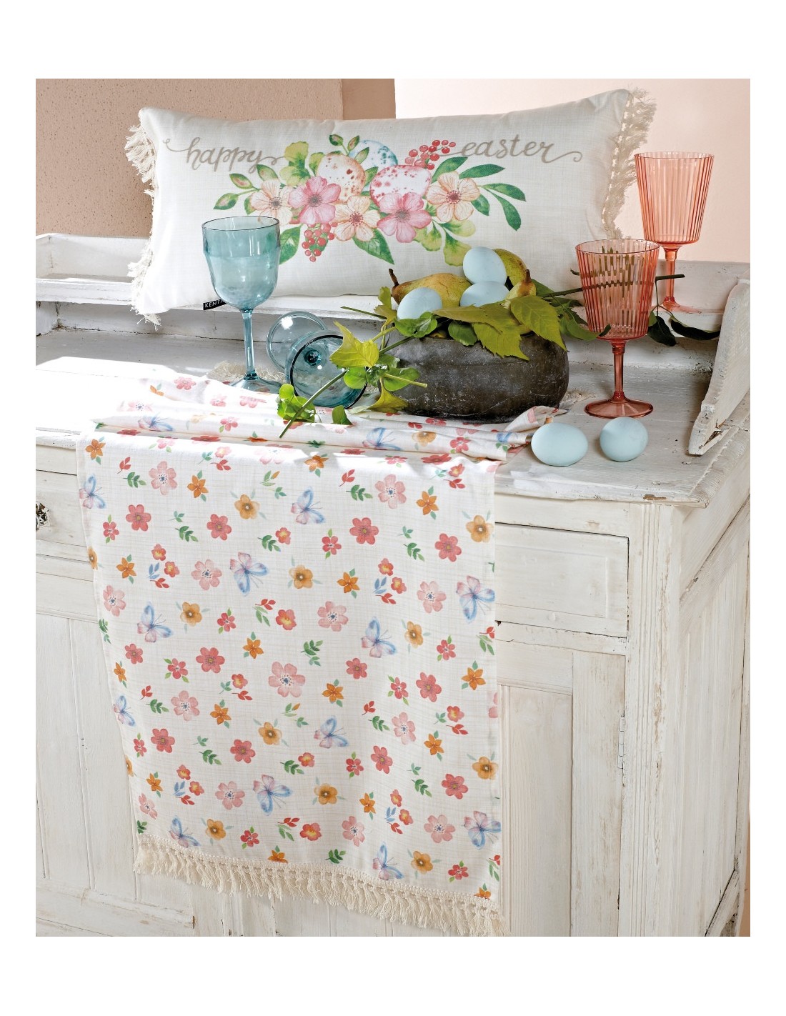 Πασχαλινό μαξιλάρι διακόσμησης δύο όψεων, φλοράλ, Kentia Easter 23-02 30x60
