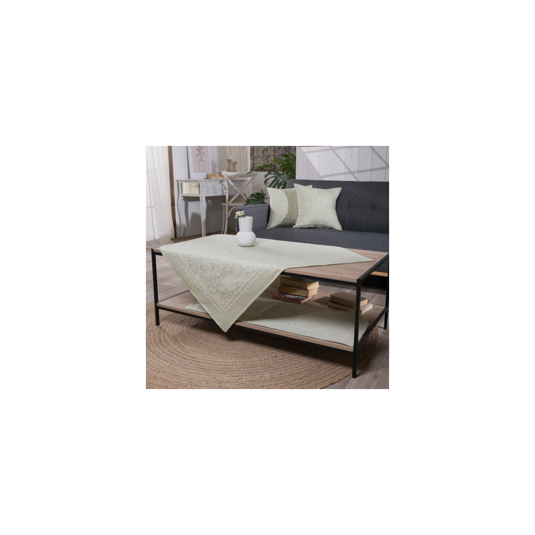 Τα υφάσματα υφαίνονται στην Ισπανία και μεταποιούνται από την εταιρία μας.Η σύνθεση του υφάσματος αποτελείται από νήματα ακρυλικά σε ποσοστό 40%. βαμβακερά σε ποσοστό 40% και πολυεστερικά σε ποσοστό 20%.Το συγκεκριμένο ύφασμα είναι γνωστό ως στόφα ή δαμάσκο.