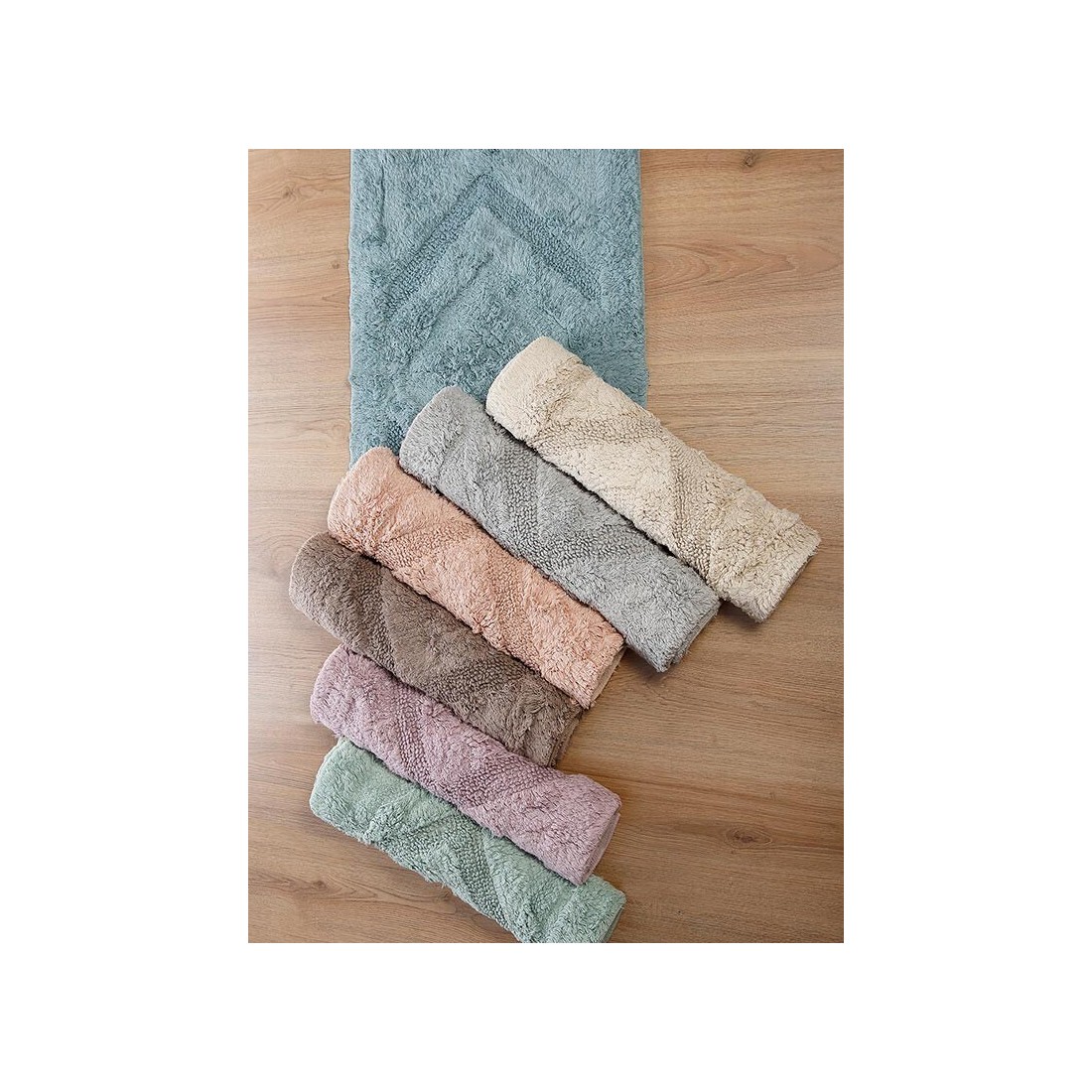 Πατάκι μπάνιου βαμβακερό, με πετσετέ υφή. Απορροφά τα νερά στο μπάνιο και προσφέρει μια απαλή αίσθηση στα πόδια μετά το ντους. Διακριτικό και ανθεκτικό στα πλυσίματα, προστατεύει από τυχόν γλιστρήματα. Επιλέξτε το χρώμα που σας ταιριάζει και δώστε στο μπάνιο σας μία νέα όψη. Ποιότητα: 100% Βαμβάκι Τεμάχια: Μεμονωμένο