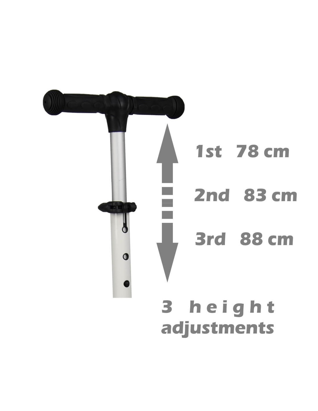 -Ύψος τιμονιού: 78 cm, 83 cm, 88 cm.