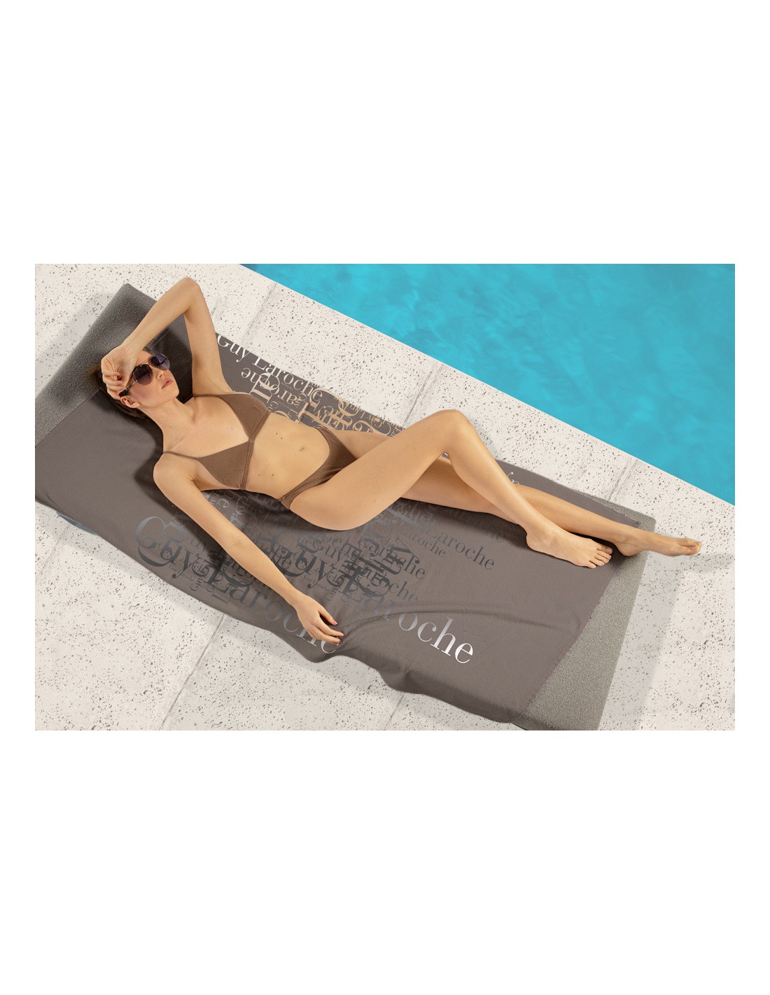 Πετσέτα θαλάσσης βελουτέ guy laroche velour printed 2103 taupe 100x175