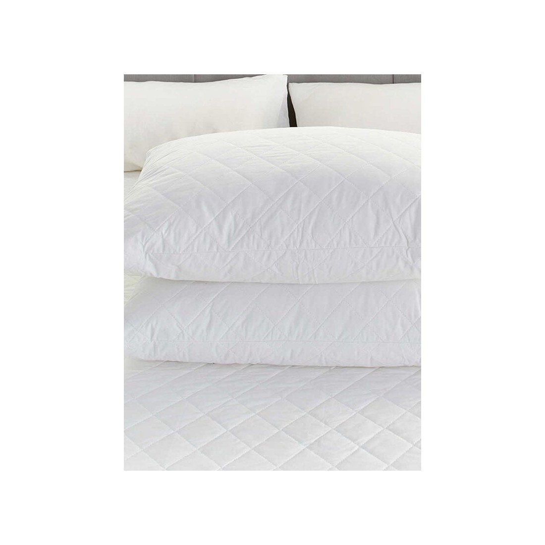 Μαξιλαροθήκες καπιτονέ με φερμουάρ. Ιδανική επιλογή για το υπνοδωμάτιό σας. τοποθετούνται στα μαξιλάρια σας και λειτουργούν σαν προστατευτικό κάλυμμα. Οι ρομβικές ραφές που διαθέτουν προστατεύουν τα μαξιλάρια σας από υγρασία. σκόνη. ιδρώτα και λεκέδες. αφήνοντας μια ευχάριστη αίσθηση καθαρότητας. Παρατείνουν τη διάρκεια ζωής των μαξιλαριών και σας χαρίζουν έναν ευχάριστο και ποιοτικό ύπνο.