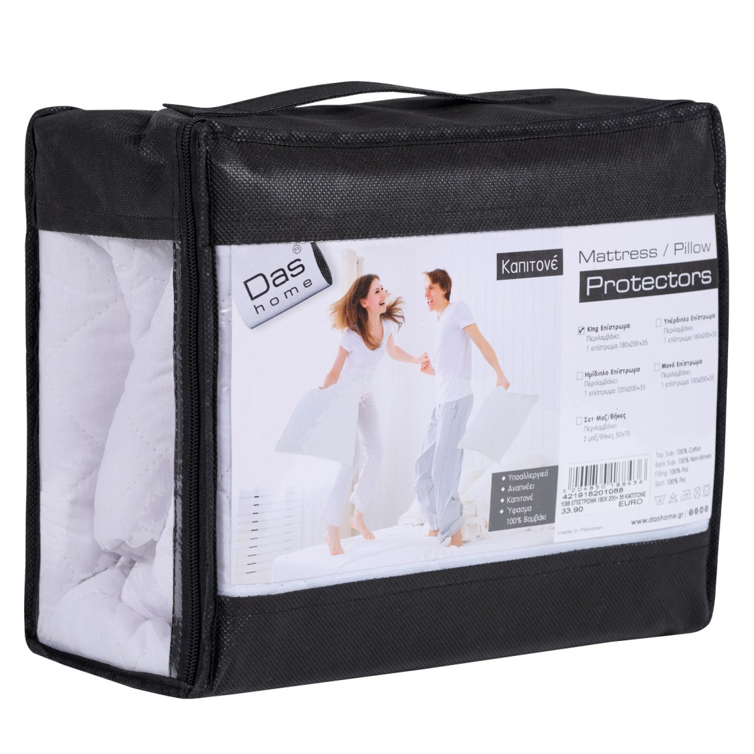 Προστατεύστε το στρώμα σας από σκόνη και λεκέδες και δημιουργήστε ένα καθαρό περιβάλλον για τον ύπνο σας. Επίστρωμα από ύφασμα καπιτονέ βαμβακερό προκειμένου να επιτρέπει τη φυσική αναπνοή του σώματος. Το εσωτερικό του από υψηλής ποιότητας Hollowfiber, ενώ είναι από non-woven για άνεση και προστασία. Διατίθεται σε διάσταση 180x200+35cm