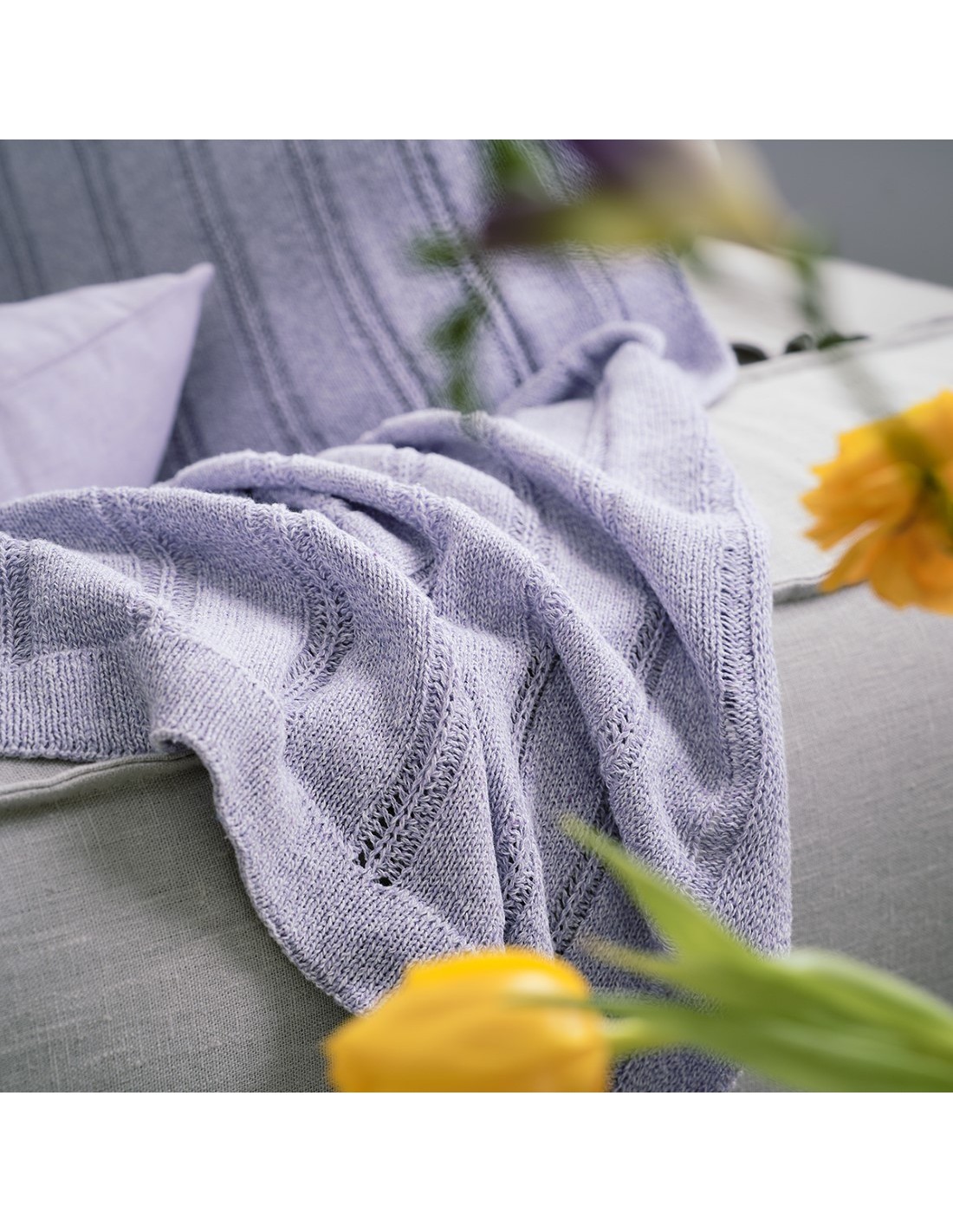 Πλεκτό διακοσμητικό ριχτάρι από βαμβακερά νήματα. Ιδιαίτερα μαλακό και χυτό ύφασμα.