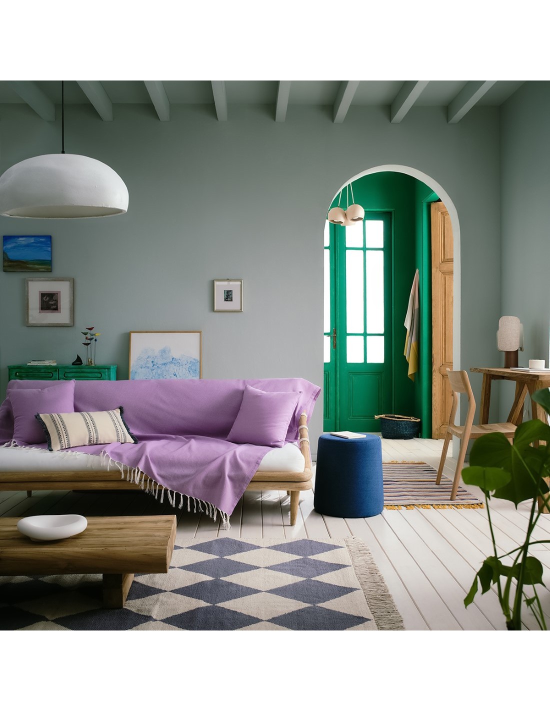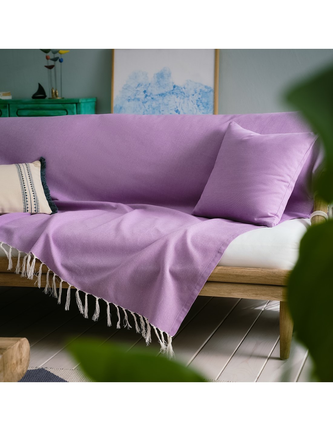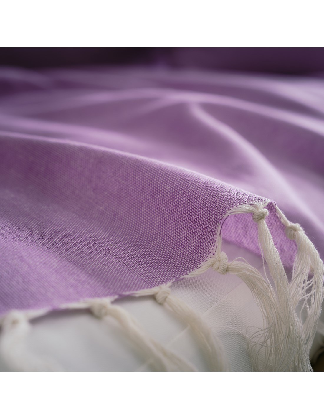 Μονόχρωμο καλοκαιρινό ριχτάρι από δροσερό, 100% βαμβακερό ύφασμα με κροσσάκι στο τελείωμα.