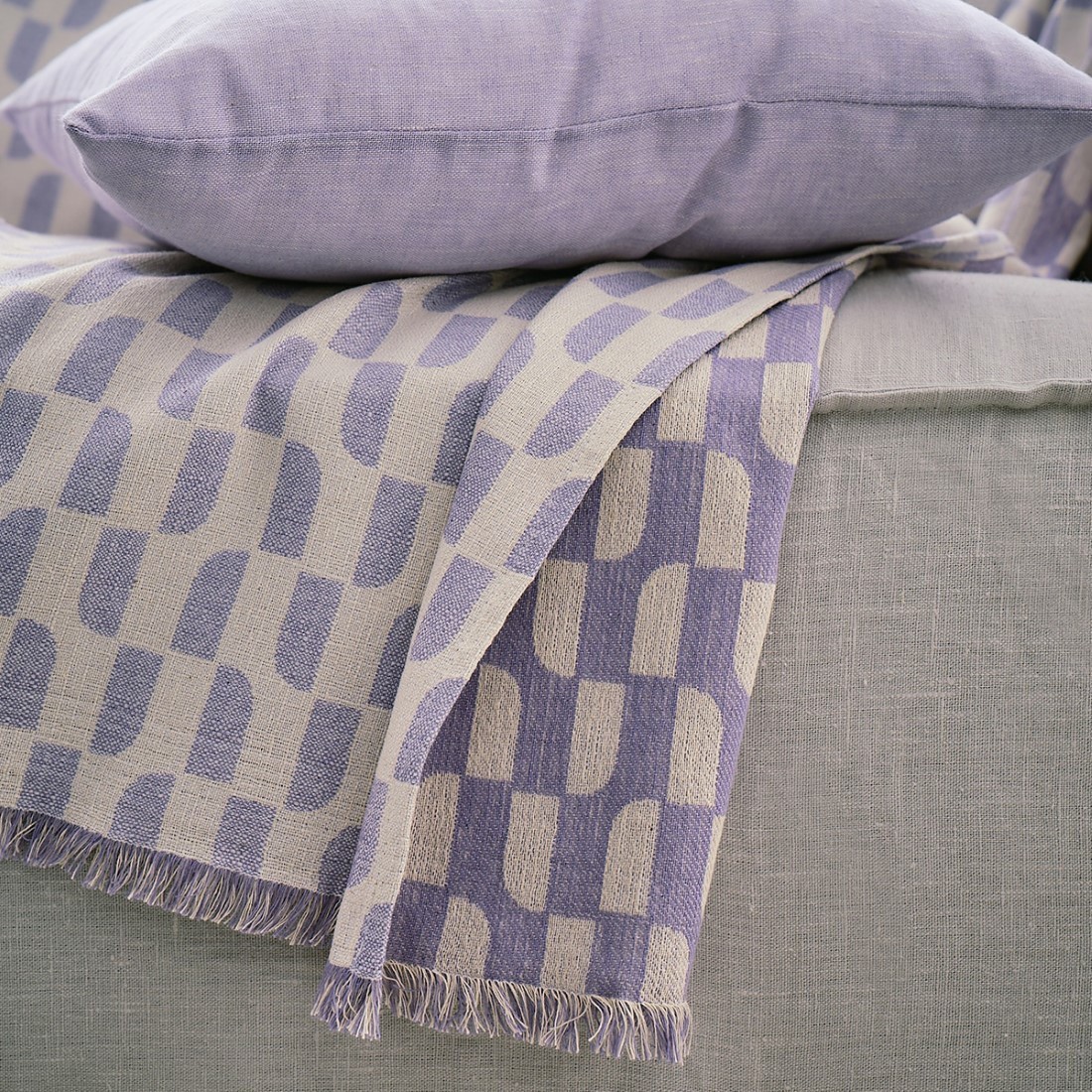 Υφαντό με γεωμετρικό σχέδιο στην ύφανση. Κατασκευασμένο από 100% πενιέ βαμβακερά νήματα που αποτρέπουν την δημιουργία κόμπων. Διακριτικό κρόσι 2cm στις δύο πλευρές