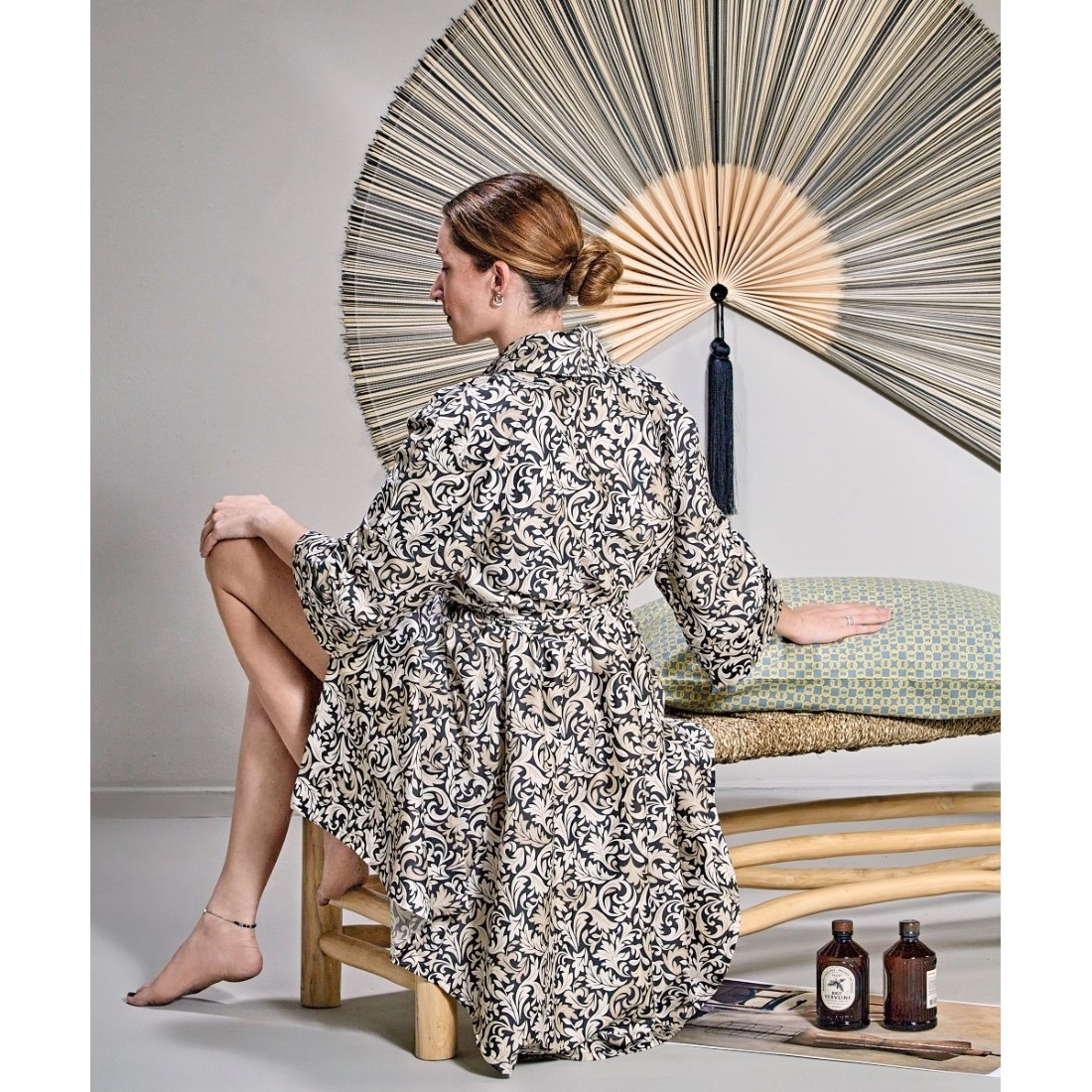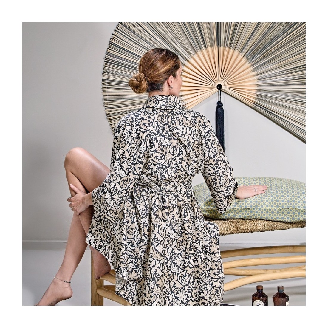 Εντυπωσιακή και περίτεχνη tunic, κατασκευασμένη από super satin ύφασμα 300 κλωστών, που φοριέται άνετα τόσο ως ρούχο στις εξωτερικές μας εμφανίσεις όσο και ως lounge wear για εκείνες που η αισθητική και η κομψότητα αποτελεί τρόπο ζωής. Ενδείκνυται Πλύσιμο στους 40°C.