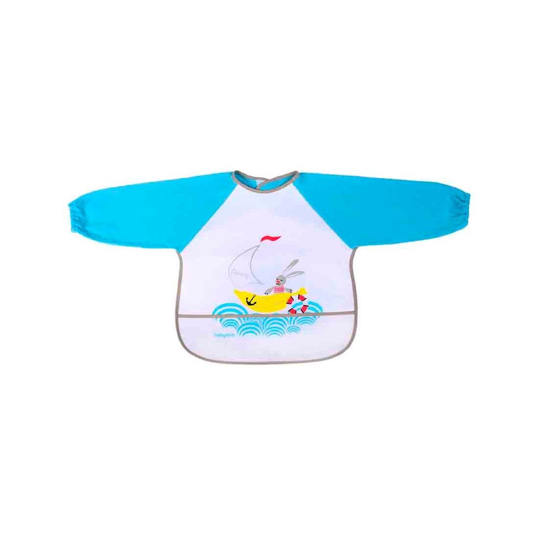 Πρακτική σαλιάρα με μακριά μανίκια και βέλκρο που φοριέται εύκολα και προστατεύει το μωρό σας και τα ρούχα του από ατυχήματα στο τραπέζι! Τρία όμορφα σχέδια και χρώματα, με τσεπούλα στο μπροστινό μέρος για να μαζεύει ότι πέφτει την ώρα του γεύματος.