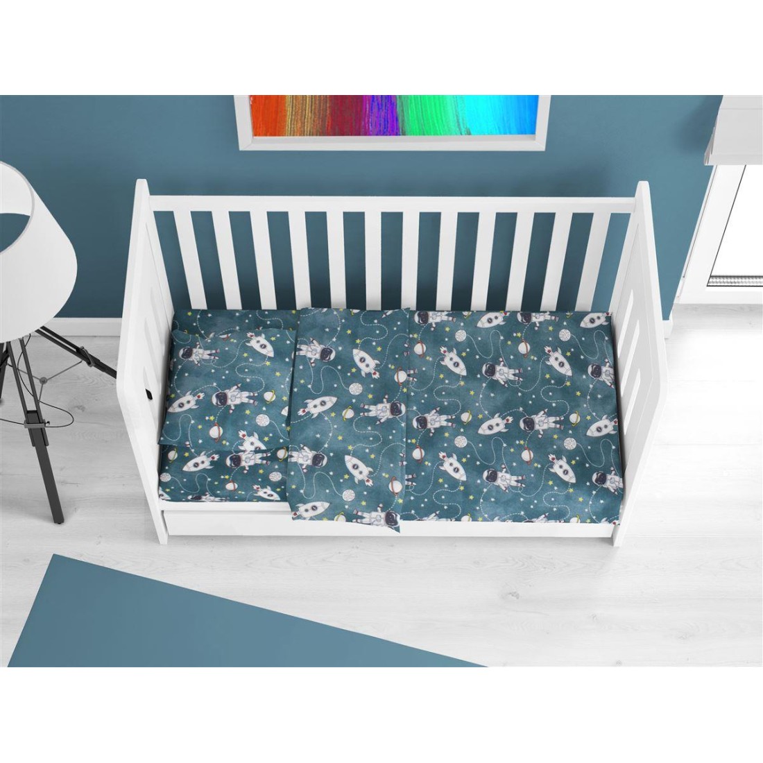 Σεντόνι Κούνιας Φανελένιο με Λάστιχο Dimcol Galaxy Travel 91 Petrol 70x140+15