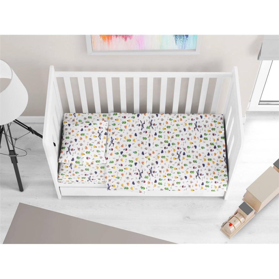 Βρεφικό σετ σεντόνια. εμπριμέ με χαρούμενα χρώματα και μοντέρνες βρεφικές παραστάσεις. 3 τεμαχίων που περιέχει: 2τεμ. βρεφικά σεντονάκια κούνιας. διαστάσεων 120X160 cm και 1 τεμ. μαξιλαροθήκη. διαστάσεων 35X45 cm. Κατασκευασμένο από απαλό 100% βαμβακερό ύφασμα. 144 κλωστών. Κατασκευάζεται στην Ελλάδα. Συσκευασία δώρου κουτί πολυτελείας.